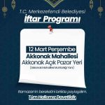 Ramazan ayında farklı mahallelerde iftar düzenleyen Merkezefendi Belediyesi, geleneğine devam ediyor. Ramazan ayında vatandaşları iftar sofralarında buluşturan Merkezefendi Belediyesi tarafından gerçekleştirilecek mahalle iftarları Akkonak Mahallesi Akkonak Açık Pazar Yeri’nde yapılacak. İftar sofrası, 12 Mart Perşembe günü Akkonak Mahallesi Akkonak Açık Pazar Yeri’ne (Akkonak Mahallesi Muhtarlığı Yanı) kurulacak.