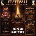 Festival programı kapsamında ‘Ortak Küme’ isimli oyun 26 Mart Perşembe günü saat 19.30’da, ‘Dağ Yolunda’ isimli yetişkin oyunu ise aynı gün saat 20.00’de Merkezefendi Kültür Merkezi’nde sahnelenecek. 28 Mart Cumartesi günü saat 18.00’de ‘Kuyuya Düşen Eşek’ ve saat 19.00’da ‘Güneş Bize Göz Kırpıyor’ isimli yetişkin oyunları yine Merkezefendi Kültür Merkezi’nde izleyiciyle buluşacak.