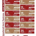 Merkezefendi Kent Tiyatrosu’nun, Ocak ayındaki oyun takvimi ise şöyle; Tiyatro ekibi ardından ‘Zamanın Tohumları’ oyununu 9 Ocak Cuma günü saat 20.00’de Merkezefendi Kültür Merkezi’nde, ‘Mızmız ve Boncuk Macera Peşinde’ oyununu 14 Ocak Çarşamba günü saat 10.30’da Yüzüncü Yıl Gençlik Merkezi’nde, ‘Nisan’ın Dokuma Tezgâhı’ oyunu 15 Ocak Perşembe günü saat 10.30’da Merkez Kütüphane’de, ‘Zamanın Tohumları’ oyununu 16 Ocak Cuma günü saat 20.00’de Merkezefendi Kültür Merkezi’nde, ‘Piyonlar’ oyunu 18 Ocak Pazar günü saat 14.30’da Merkezefendi Kültür Merkezi’nde, ‘Mızmız ve Boncuk Macera Peşinde’ oyununu 19 Ocak Pazartesi günü saat 14.30’da Yüzüncü Yıl Gençlik Merkezi’nde, ‘Nisan’ın Dokuma Tezgâhı’ oyununu 20 Ocak Salı günü saat 14.30’da Merkez Kütüphane’de, ‘Mızmız ve Boncuk Macera Peşinde’ oyununu 21 Ocak Çarşamba günü saat 14.30’da Yüzüncü Yıl Gençlik Merkezi’nde, ‘Bir Evlenme Teklifi – Ayı’ oyununu 23 Ocak Cuma günü saat 20.00’de Merkezefendi Kültür Merkezi’nde, ‘Piyonlar’ oyununu 28 Ocak Çarşamba günü 14.30’da Merkezefendi Kültür Merkezi’nde ve Nisan’ın Dokuma Tezgâhı’ oyununu 30 Ocak Cuma günü saat 14.30’da Merkez Kütüphane’de gerçekleştirilecek.