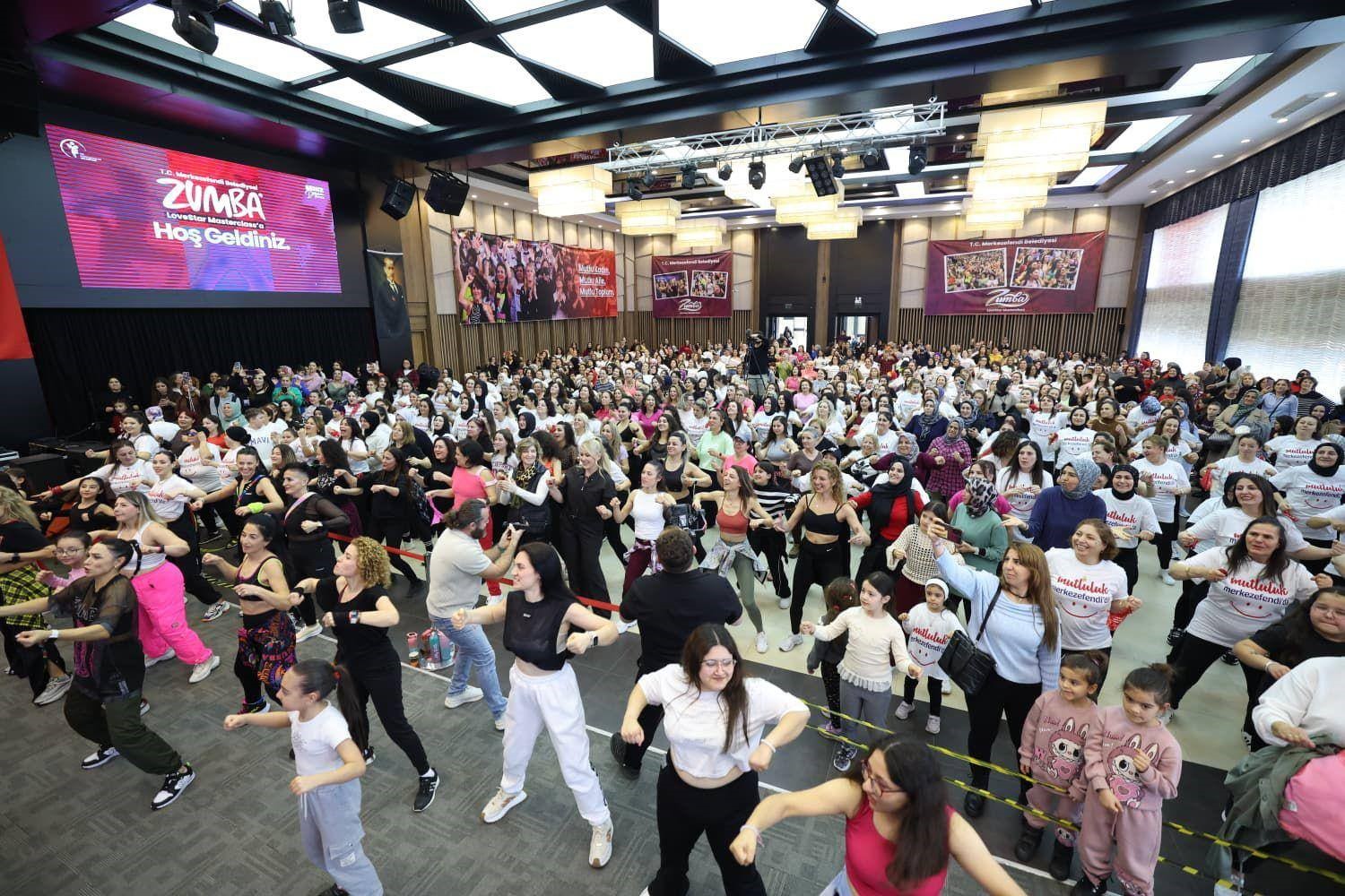 Dördüncü kez düzenlenen ‘Zumba LoveStar Masterclass’ta Merkezefendi Belediye Başkanı Şeniz Doğan, Kadın Çocuk Yaşam Merkezleri’nde eğitim alan kursiyerler ve etkinliğe katılan tüm kadınlar müziğin ritmiyle spor yaptı.