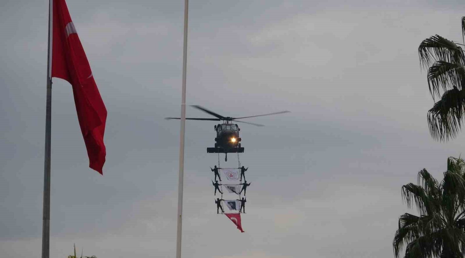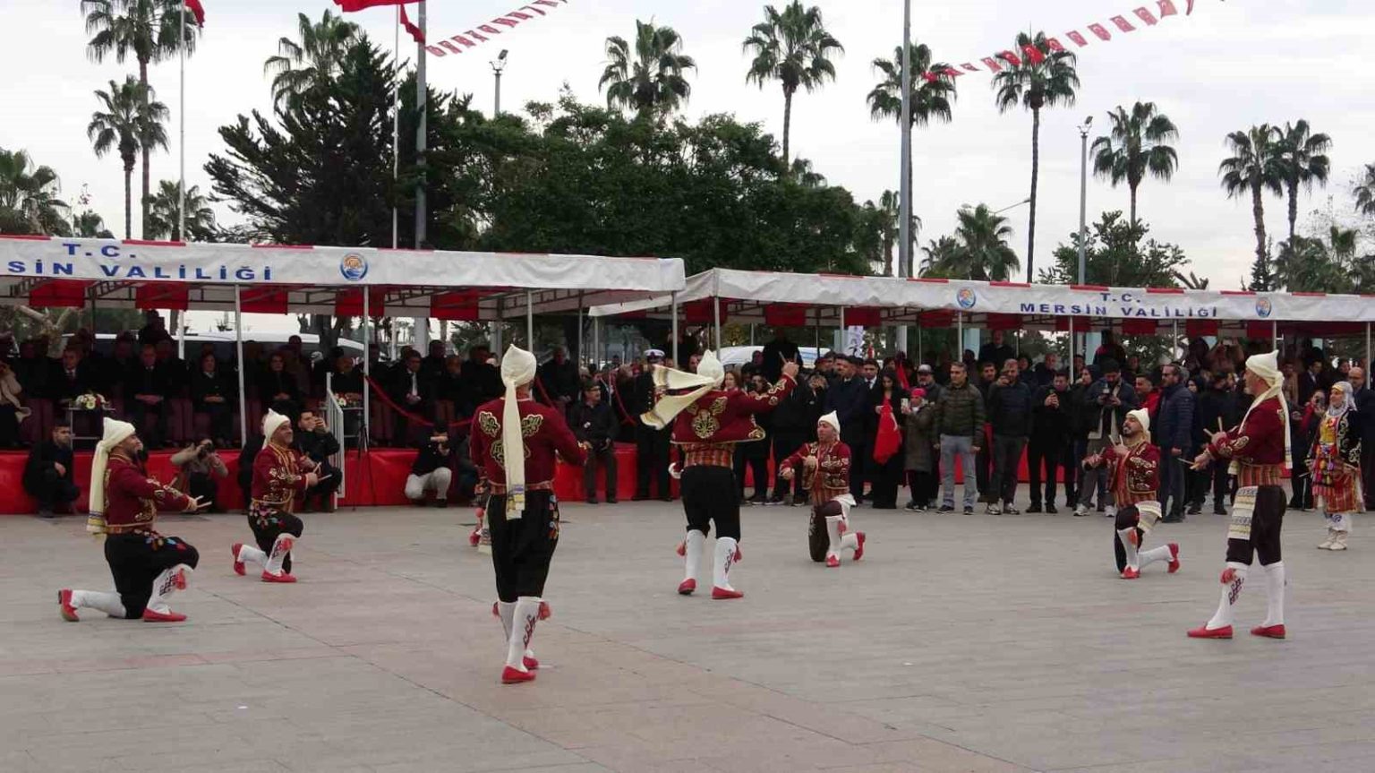 Mersin’in düşman işgalinden kurtuluşunun 104. yıl dönümü, çeşitli etkinlikler ve törenlerle kutlandı. Jandarma Genel Komutanlığına bağlı komando birliğinin tüfekli hareket ile helikopterde üzüm salkımı gösterisi nefes kesti.