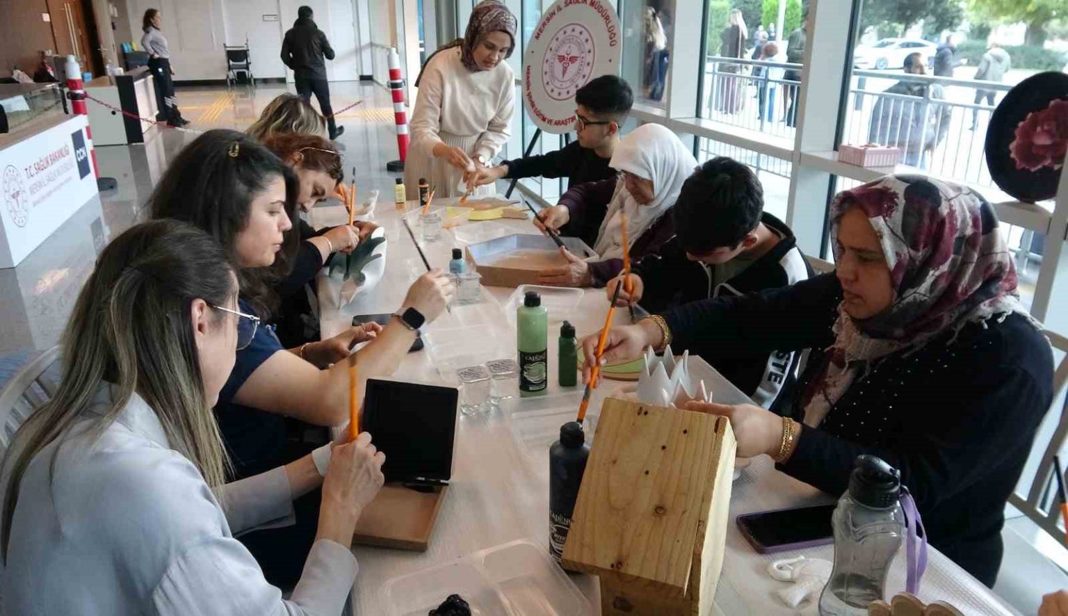 Mersin Şehir Eğitim ve Araştırma Hastanesi’nde hastalar, hasta yakınları ve sağlık çalışanlarına yönelik ‘Teratölye, Seramik ve Ahşap Boyama Etkinliği’ düzenlendi.
