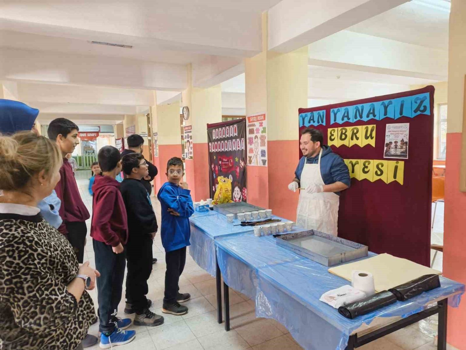 Uzman eğitmenler eşliğinde gerçekleştirilen etkinlikte, Türk-İslam sanatının en zarif örneklerinden biri olan Ebru Sanatı öğrencilere tanıtıldı. Çocuklara ebru sanatının tarihi yolculuğu, kitreyle yoğunlaştırılmış suyun gizemi, toprak boyaların özelliği ve at kılından yapılan fırçaların önemi anlatıldı. Teorik bilgilerin ardından kurulan ebru teknelerinin başına geçen öğrenciler, uygulamalı eğitime geçti.