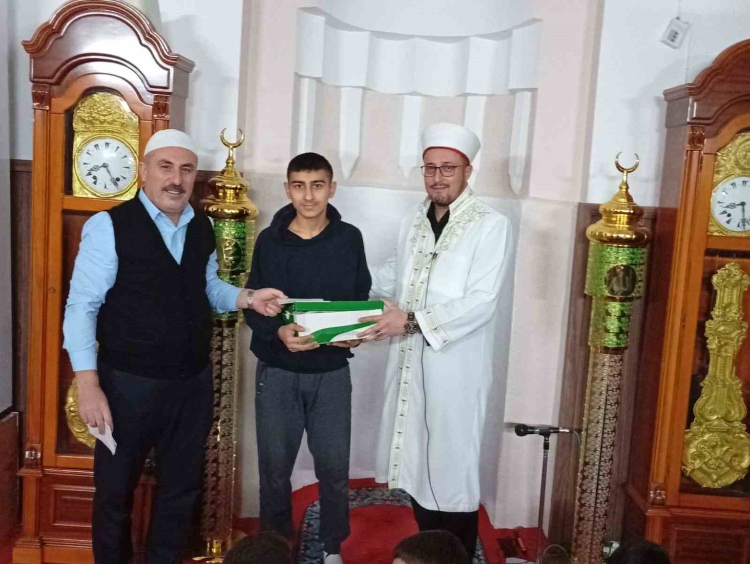 Geçirdiği küçük bir kaza nedeniyle hediyesini almaya gelemeyen bir öğrenciyi evinde ziyaret ettiklerini belirten İmam Tevfik Düdükcü ise, “Mehmet hocamız ve öğrenci arkadaşlarıyla birlikte öğrencimizi evinde ziyaret ederek geçmiş olsun dileklerimizi ilettik ve hediyesini kendisine takdim ettik. Rabbim bu gençlerimizden ve anne babalarından razı olsun. Camilerimiz böyle pırlanta gibi gençlerle dolup taşsın inşallah. Bu gençlerimizin hediyelerinde bizlere destek olan cami cemaatimize ve hayırsever iş insanlarına da şükranlarımızı sunuyoruz.” diye konuştu.