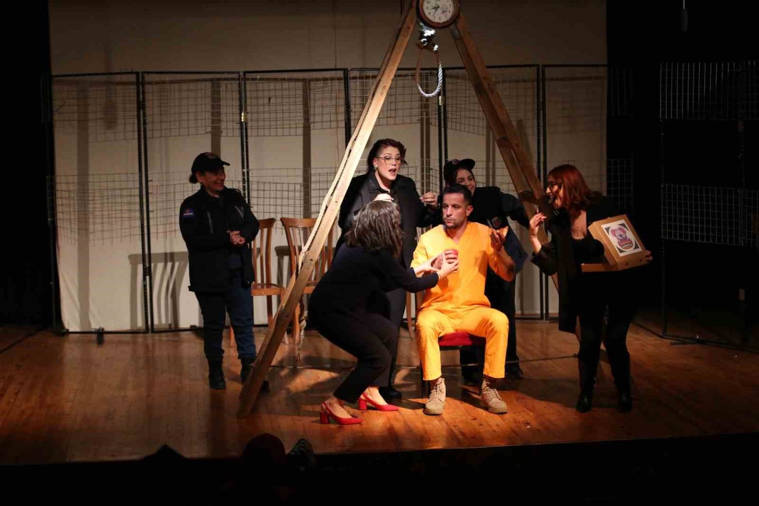 Nazilli Belediyesi Mehmet Yüzügüler Kültür Merkezi Tiyatro Salonunda yoğun katılımla sahnelenen Nazilli Halk Eğitimi Merkezi Emek Arası Tiyatro Topluluğu’nun “Hepimiz Mahkumuz” isimli tiyatro oyunu ayakta alkışlandı. Nazilli Halk Eğitimi Merkezi Öğretmenlerinden Kemalettin Bal tarafından kaleme alınan ve yönetmenliğini de üstlendiği oyun büyük beğeni kazandı. Nazilli’de ilk kez sahnelenen ve 2 aylık bir çalışma ile seyircisi ile buluşan oyunu izlemek üzere 300 kişilik salona yaklaşık 500 kişi gelince salon kapıları da dahil olmak üzere salon tıka basa dolduruldu. Bir saat süren oyunun sonunda seyircinin ayakta alkışladığı oyuncular ve Halk Eğitimi Merkezi yöneticileri tebrik yağmuruna tutuldu.