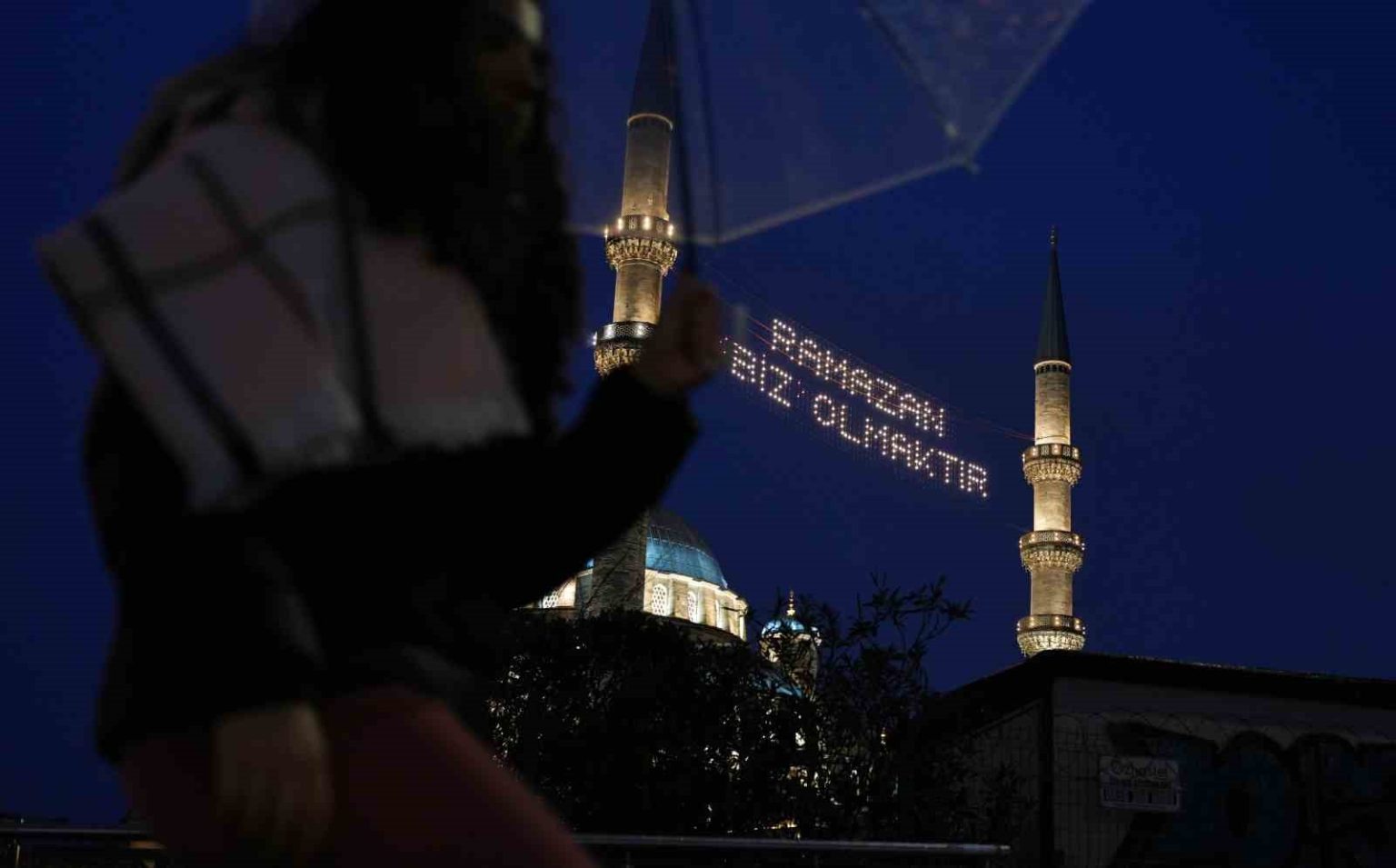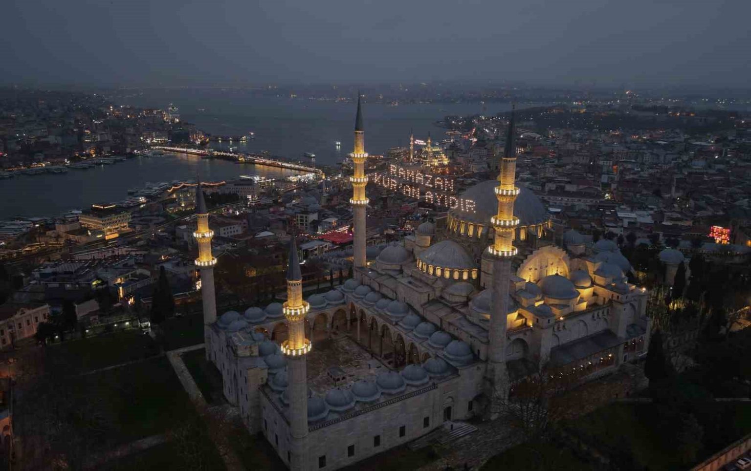 Sahur hazırlıklarına saatler kala dron ile kaydedilen görüntülerde, minareler arasına asılan mahyaların şehrin tarihi dokusuyla bütünleştiği görüldü. Süleymaniye Camii’nde “Ramazan Kur’an Ayıdır” yazılı mahya semaları süslerken, Yeni Camii’nde de minareler arasına ’Ramazan biz olmaktır’ yazıldı. Ramazan ayı boyunca İstanbul’daki camilerde beş farklı mahya yazısı yer alacak.