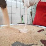Mesleği dedesinden ve babasından devralan 3. kuşak temsilcisi Mustafa Akgün, susamlı helvanın yapım sürecini sabahın erken saatlerinde başlatıyor. İçerisinde glikoz veya yapay tatlandırıcı bulunmayan helva; su, şeker, limon suyu ve çöven otunun ateşte kaynatılmasıyla hazırlanan ağdanın, tahta kepçelerle kıvam alması ve çifte kavrulmuş susamla buluşmasıyla üretiliyor.