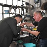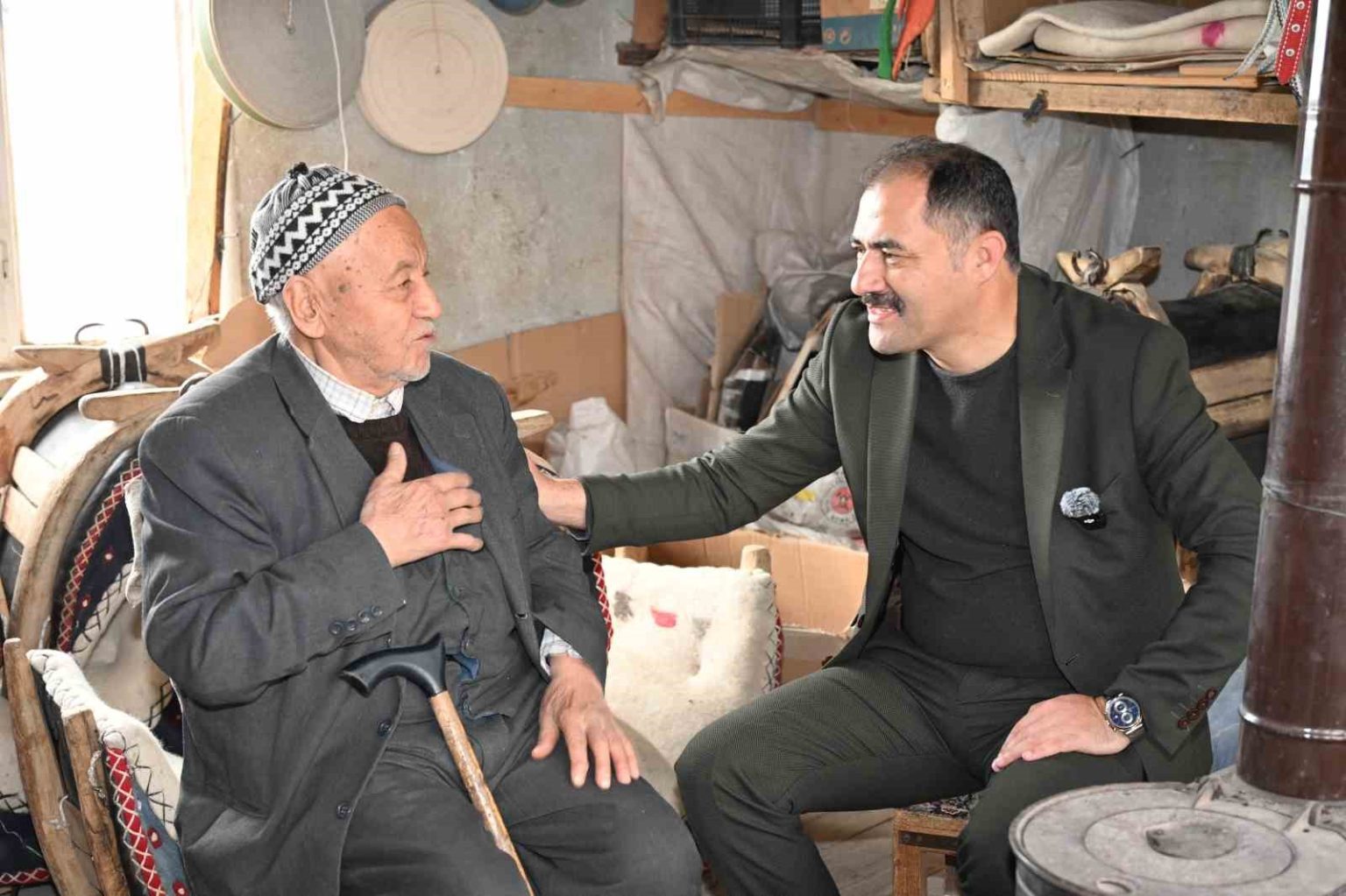 Demirci’nin köklü mesleklerini yaşatan ustalarla bir araya gelen Başkan Kara, ziyaretleri kapsamında Helvacı İhsan Akgün, Terzi Yaşar Öztemel, Çan Ustası Mustafa Sabancı, Nal Ustası Zabit Çoban, Semerci Ustası Mehmet Ali Ağaçcı ile 57 yıldır berberlik mesleğini sürdüren Hasan Erşahin’i iş yerlerinde ziyaret etti.