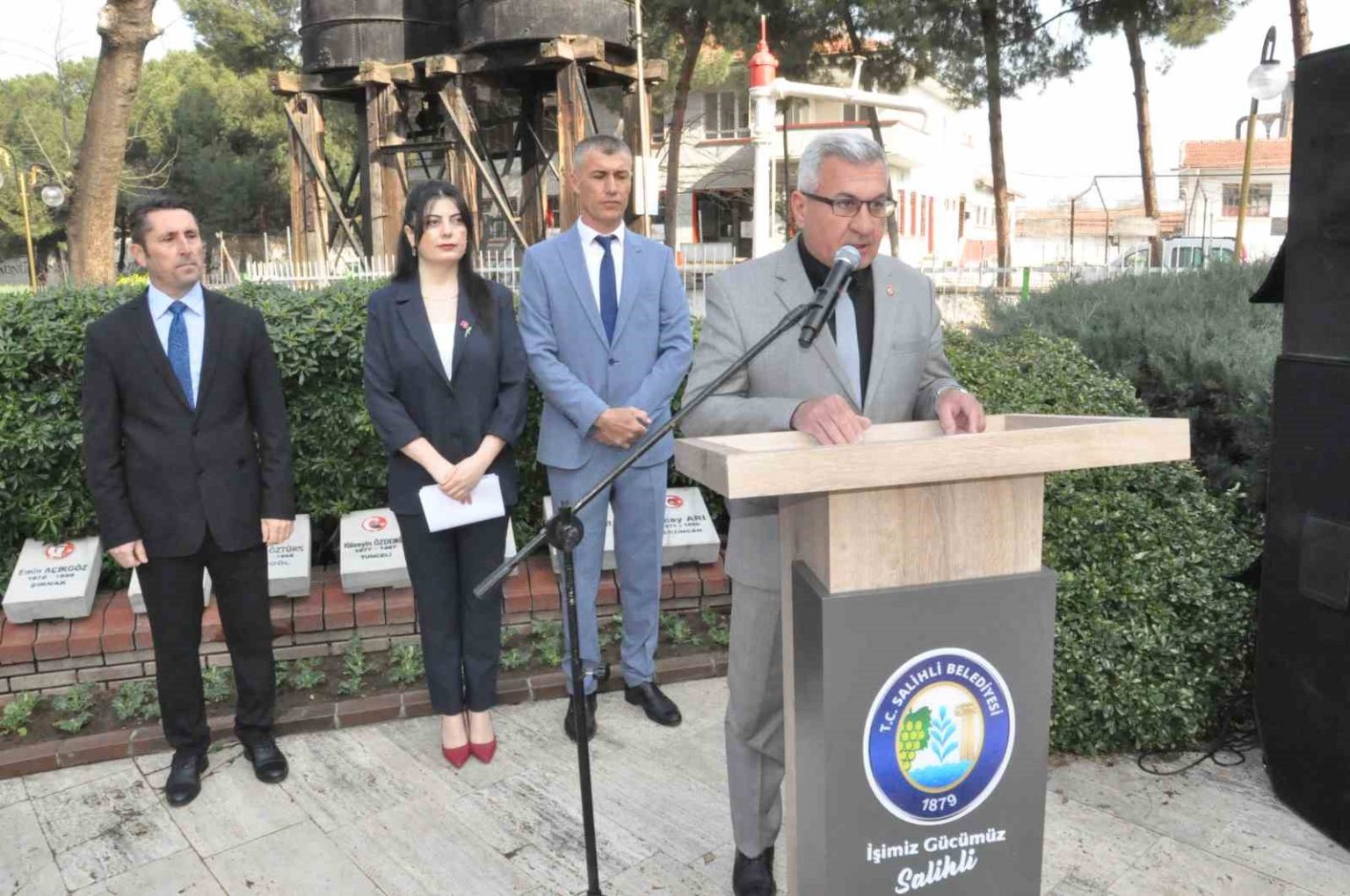 .Saygı duruşunda bulunulup, İstiklal Marşı okunduğu törende günün anlam ve önemine ilişkin konuşmayı Türkiye Harp Malulü Gaziler, Şehit Dul ve Yetimler Derneği Salihli Temsilcisi Rıdvan Herey yaptı. Herey “Bugün burada, aziz milletimizin istiklali ve istikbali uğruna yazdığı en büyük destanlardan olan 18 Mart Çanakkale Deniz Zaferi’nin 111. yılını kutlamak ve bu mukaddes vatan uğruna bir daha geri dönmemek için gidenlerin, tarihe destanlar yazdıran kahramanları anmak, hatırlamak, vatan uğruna şehit düşen aziz şehitlerimize dualar göndermek için toplandık” dedi.