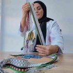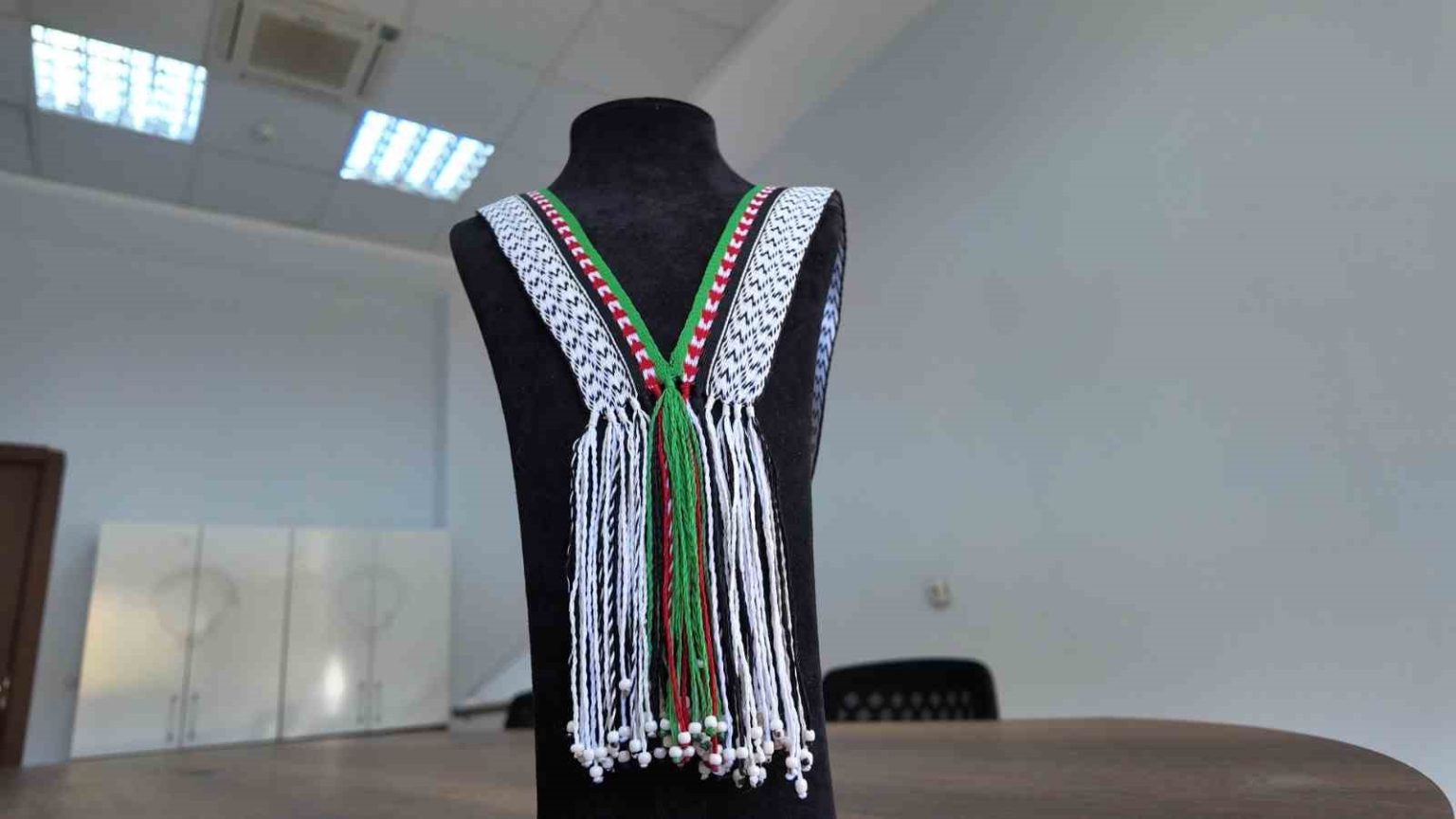 Usta öğretici Nebahat Yıldız, yapmış olduğu özel tasarımın, Filistin bayraklı kolye olduğunu söyleyerek, “İlk önce şema tasarım aşamasıyla başladı, onu oluşturdum. Daha sonra kartları ipe geçirmeyle devam etti. Tezgaha aktarıp dokumaya başladım. Dokuma 3-4 gün sürdü. Bitiş aşamasında farklı işlemler, farklı tekniklerle yol aldık. Boncuklar takıp kolye aşamasını tamamladık. Toplamda bir hafta sürdü. Gönlümüz Filistin’den yana, dualarımız onlarla. Kendi sanatımda da bunu ortaya koymak istedim. En azından bu şekilde destek olmak istedim” diye konuştu.