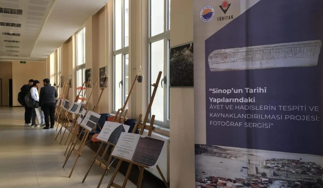 TÜBİTAK 2209/A Üniversite Öğrencileri Araştırma Projeleri kapsamında yürütülen “Sinop İlinin Tarihi Yapılarında Bulunan Ayet ve Hadislerin Tespiti ve Kaynaklandırılması” başlıklı çalışmanın sonuç fotoğraf sergisi açıldı. Danışmanlığını Sinop Üniversitesi İlahiyat Fakültesi Dr. Öğr. Üyesi Haydar Güngör’ün yaptığı, yürütücülüğünü ise Hayreddin İzzet Şahin’in üstlendiği proje kapsamında hazırlanan sergi, Sinop Üniversitesi İlahiyat Fakültesi Genç Ofis’te ziyaretçilere sunuldu.