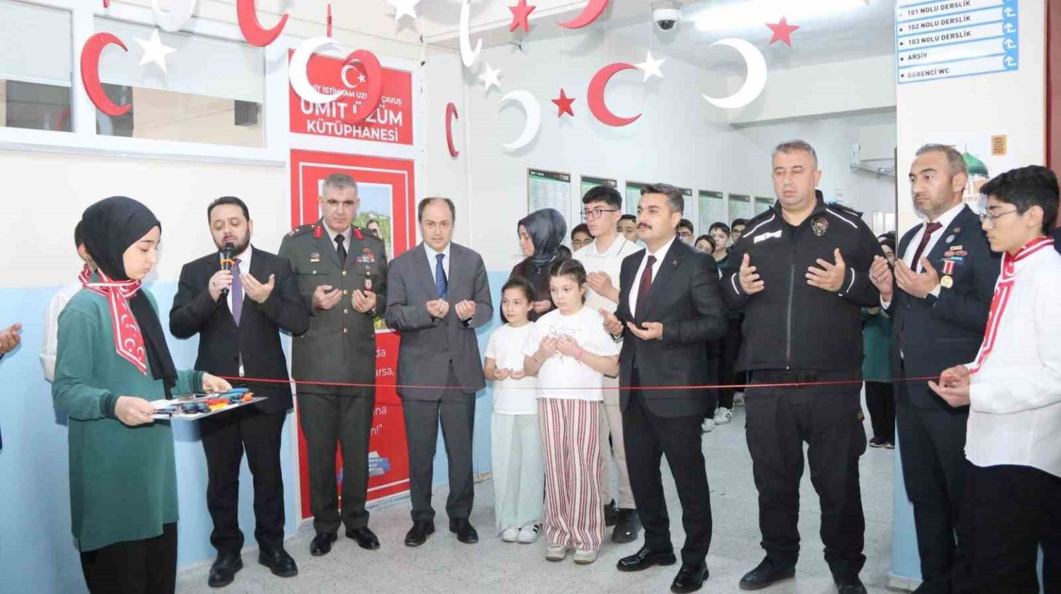 Sivas Kadıburhaneddin İmam Hatip Ortaokulunda, “Unutulmayan Kahramanlar Şehit Kütüphaneleri Projesi” kapsamında Şehit İstihkam Uzman Çavuş Ümit Üzüm’ün adının verildiği kütüphane için açılış programı gerçekleştirildi.