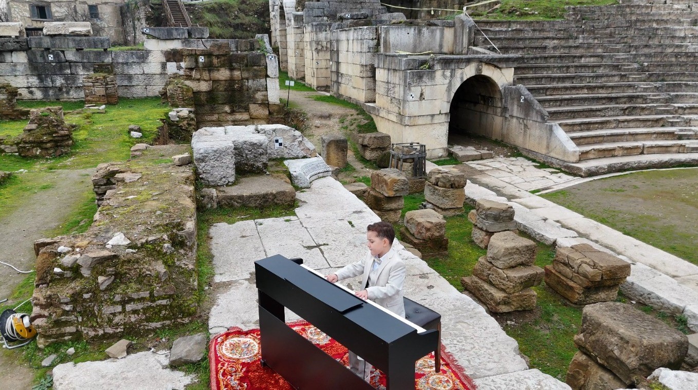 Konuralp’te antik taş duvarların arasında yankılanan piyano ezgileri, tarih ile müziğin etkileyici buluşmasına sahne oldu. Düzce Belediyesi Basın Yayın ve Halkla İlişkiler Müdürlüğü’nün gerçekleştirdiği özel çekimde 6 yaşındaki Mehmed Selim Biçer, tarihi Milattan Önce 3. Yüzyıl’a dayanan Konuralp Antik Tiyatrosu’nda piyano performansı sergiledi. Türk Marşı, Nazende Sevgilim, Tuna Dalgaları, Passacaglia ve Field eserlerini başarıyla icra eden Biçer, küçük yaşına rağmen eserlere olan hâkimiyetiyle dikkat çekti.