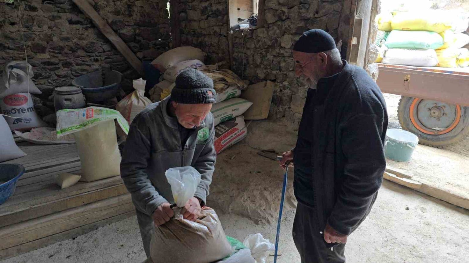 Akören Mahallesi sınırlarındaki 2 taşlı tarihi değirmen, hem ata tohumlarını öğütüyor hem de bölge hayvancılığına katkı sağlıyor. 70 yaşındaki Ali Hıdır, 53 yıldır dedelerinden kalan mesleği sürdürdüğünü belirterek, değirmene ulaşımın zorluklarına dikkat çekti. Derede geçit bulunmadığını ifade eden Hıdır, “Arabası ile gelen kişilerin getirdiklerini, dereden geçit olmadığı için eşeğimize yükleyip değirmene götürüyoruz” dedi.