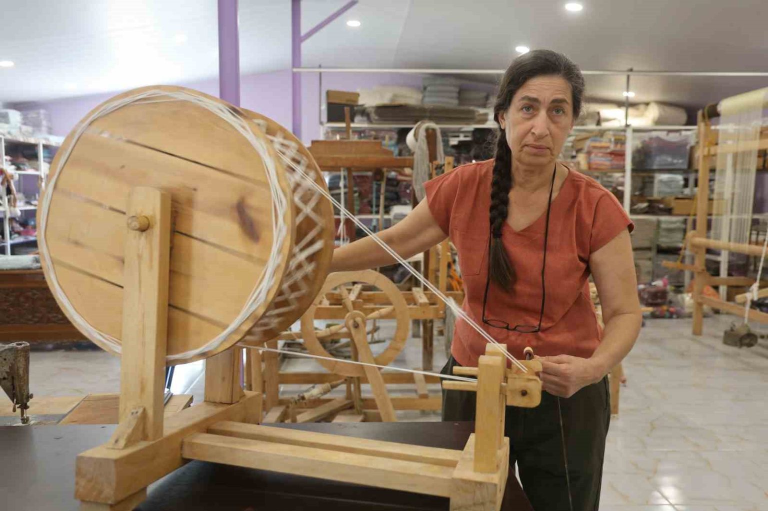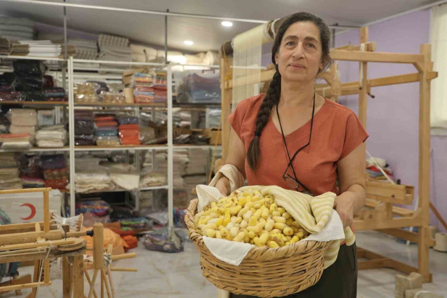 “Hatay Sarısı aksesuar olarak da çok dokuyoruz; şal, fular, atkı gibi ama kumaş olarak da tercih ediliyor”