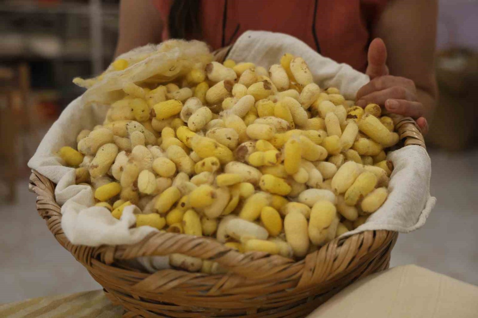 Hatay Sarısı’nın ipeğe dönüşüm sürücünü anlatan Emel Duman, “Hatay Sarısı işlemesi oldukça meşakkatli bir süreci var. İpek kozası yumurtasından çıkıyor ve kendinin on bin misli büyüyen bir canlı. Uyku döneminde 30 gün boyunca 4 defa uyuyor deri değiştiriyor. Otuzuncu günün sonunda da doğadan topladığımız sağlıklı çalıları onların yaşam alanlarına bırakıyoruz. Onlar da o çalılara çıkıyor. İpek böceği kendi etrafında kozasını örüyor. Ondan sonra kelebek olup çıkıyor. Dolayısıyla kelebekler çıktıktan sonra kozaları topluyoruz ve onları önce elyafa döndürüyoruz. Elyaftan sonra ipliğe döndürüyoruz. İplikten sonra da dokumaya geçiyoruz. Fiyatı talebe göre değişiyor. Aksesuar olarak da çok dokuyoruz; şal, fular, atkı gibi ama kumaş olarak da tercih ediliyor. Talebe göre ürünü nasıl değerlendireceğimize karar veriyoruz ama tabii ki diğer ürünlerden ayrıştıran en önemli özelliği tamamen el yapımı olması ve bir kalitesinin üst seviyede olması, piyasadaki diğer ürünlerden biraz daha fiyatlı diyebiliriz. Alt ürün fiyat olarak bin 500 TL ila 10 bin TL kadar ürün olabilir” ifadelerini kullandı.