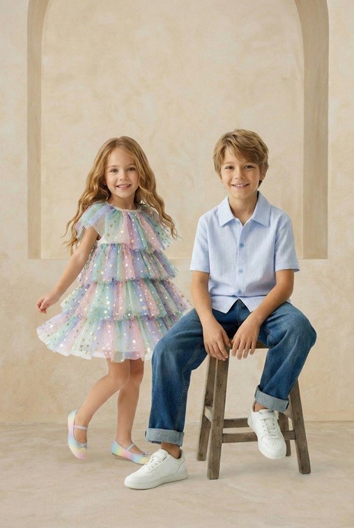 Çocuk koleksiyonunda rahat-şık alt üst takımlar, kolay kombinlenebilir setler ve ikili-üçlü paket ürünler yer alıyor. Koleksiyon bayramlar ve 23 Nisan için seçkiler, doğum günleri ile özel anlar için tasarlanan tütülü elbiseler, etekler ve büyük yakalı tasarımlarla tamamlanıyor.