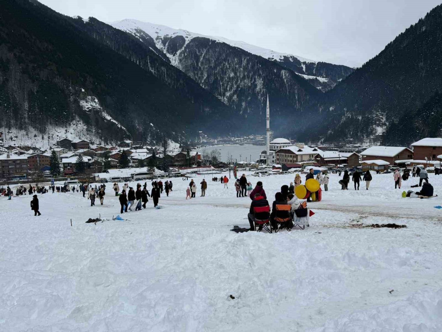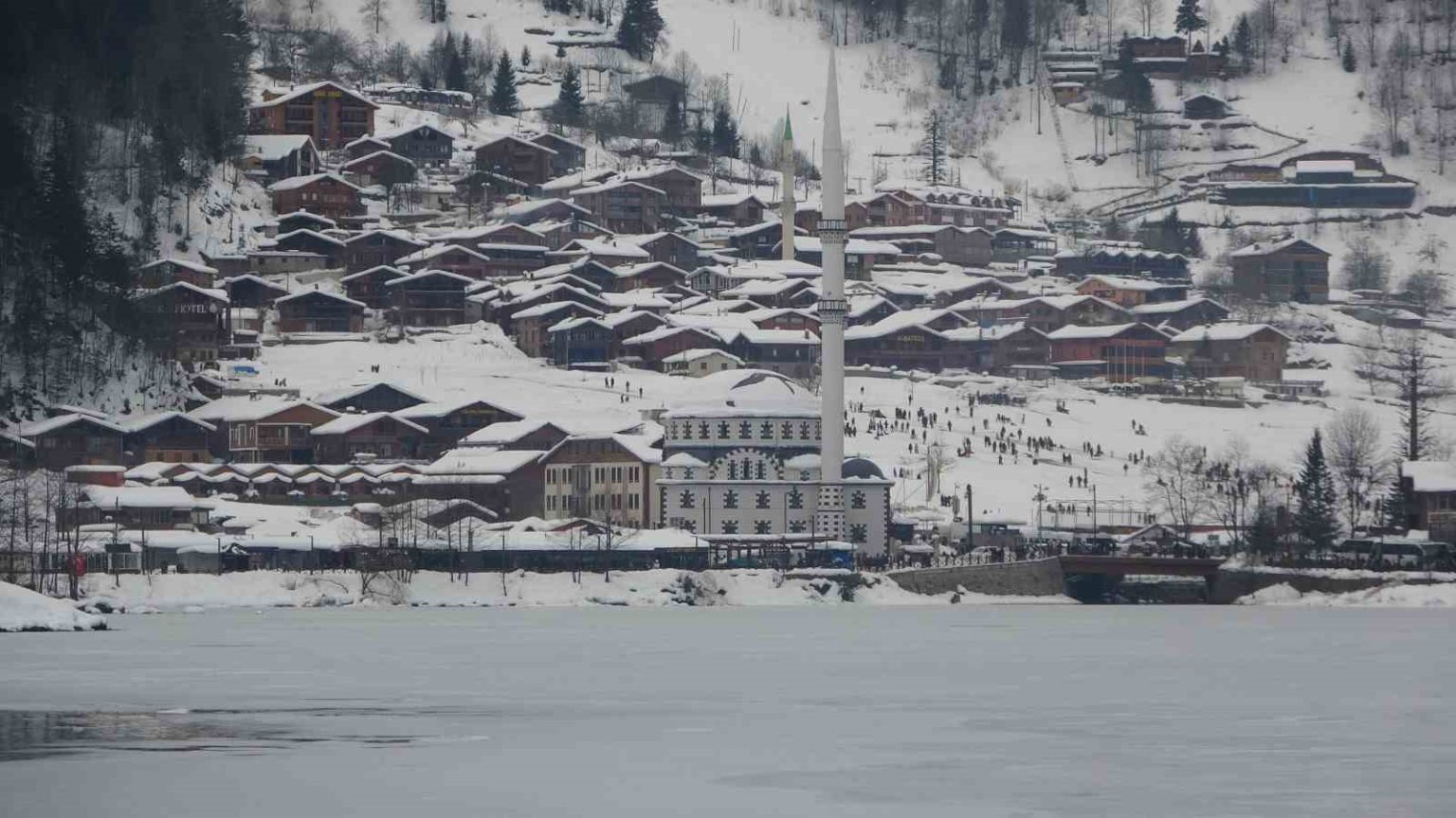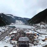 Trabzon’un dünyaca ünlü turizm merkezi Uzungöl’de bu yıl ilk kez düzenlenen Kış Festivali’nde binlerce kişinin katılımıyla gölün çevresini saran horon halkası oluşturuldu.
