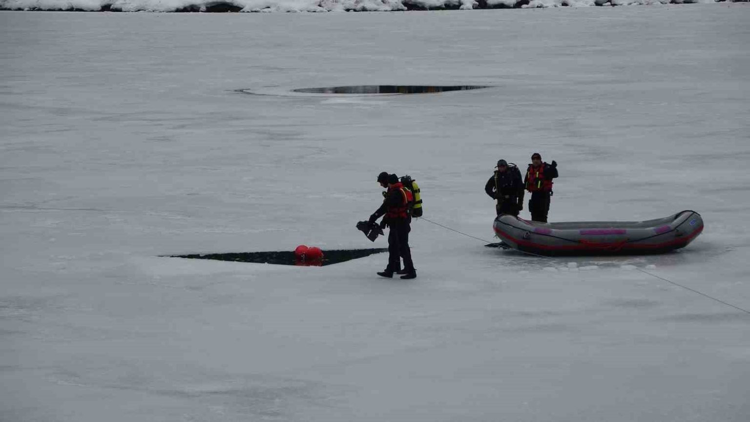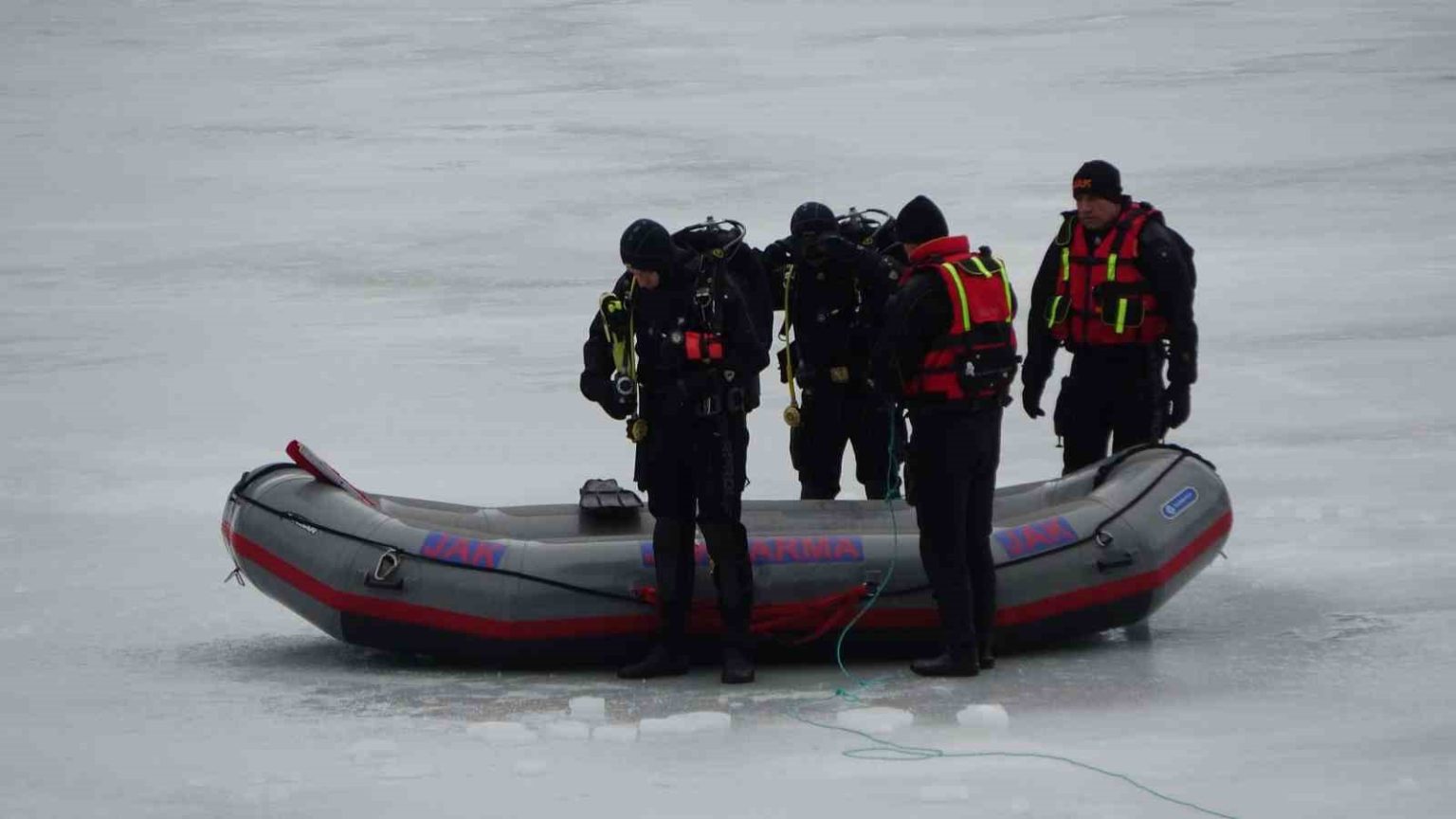 Öte yandan Trabzon İl Jandarma Komutanlığı Su Altı Arama Kurtarma (JAK) Timi göl içerisinde kısa bir gösteri yaptı.
