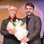 Konuşmanın ardından Aydın, sanatçılara çiçek takdim etti.
