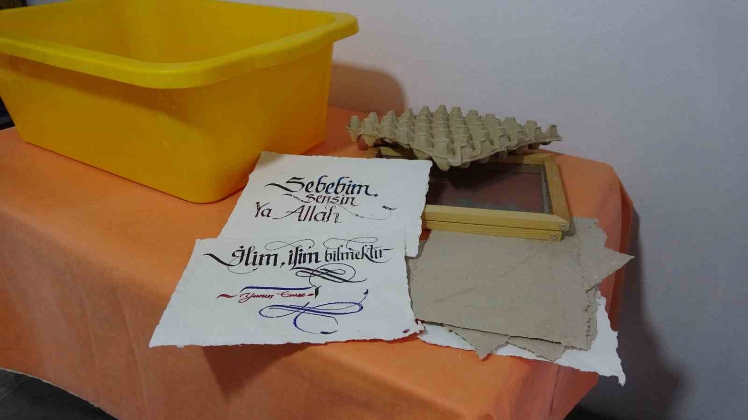 Yumurta kolilerinden el yapımı kağıt üretiyorlar