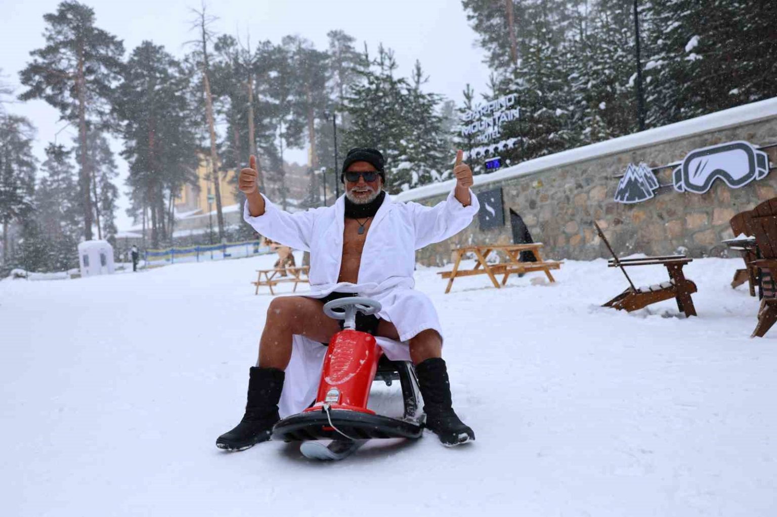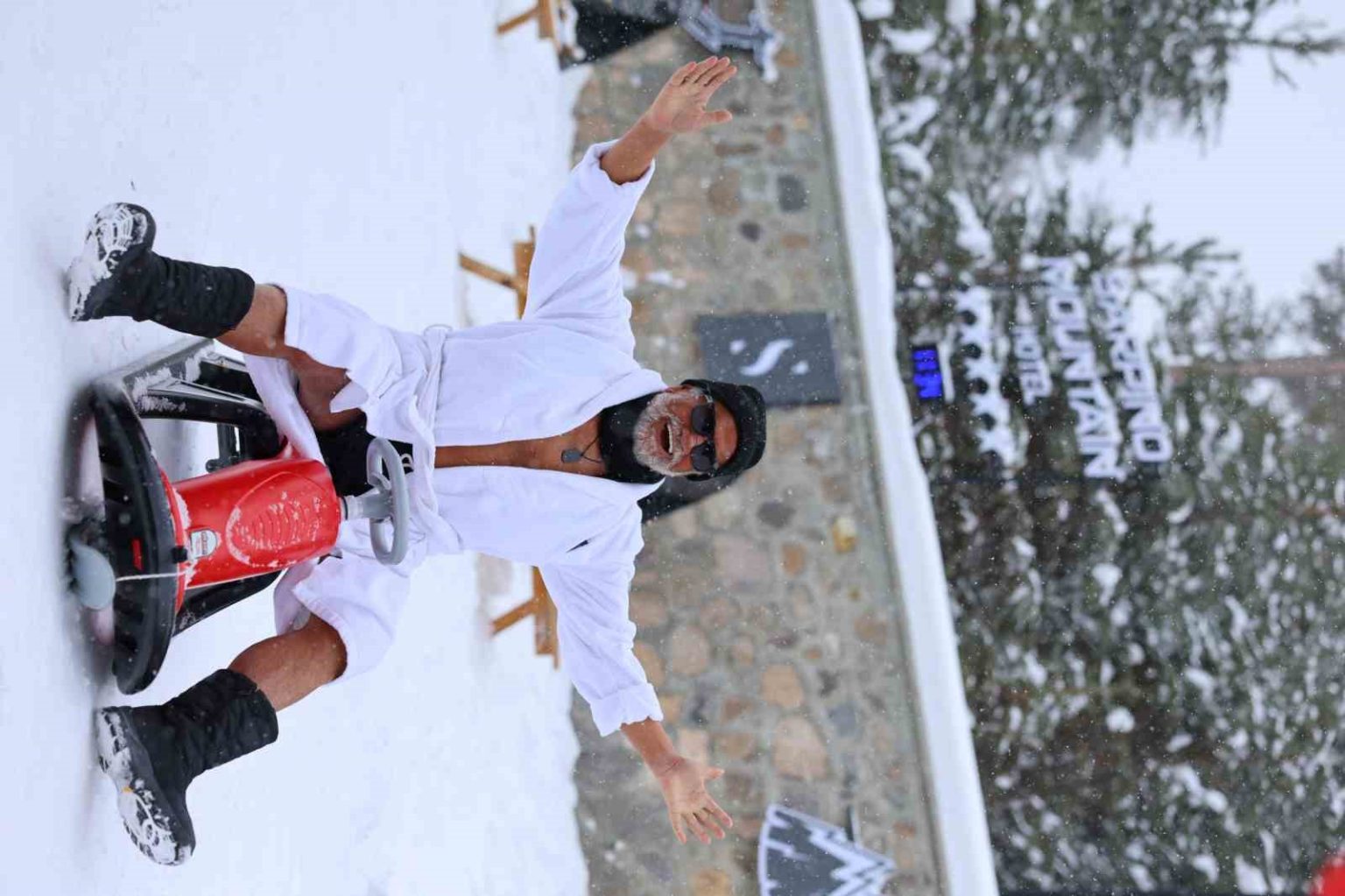 Kendisine tatil için Kristal karlar diyarı Sarıkamış Sarpino Mountain Otel’i seçen Fedon burada kayağın ve karın keyfini çıkarıyor.