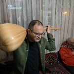 Görme engelli sanatçı sazı ensesinde çalıyor