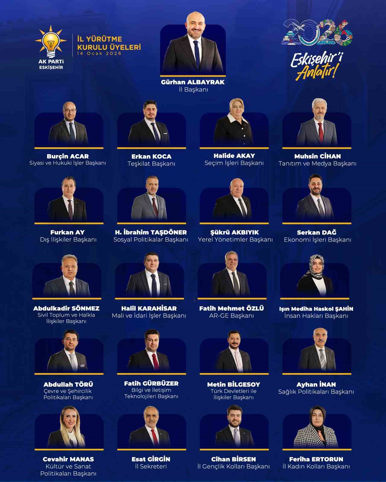 AK Parti Odunpazarı ve Tepebaşı ilçe başkanlıklarına yapılan atamaların ardından İl Yürütme Kurulunda görevlendirilen yeni isimler belli oldu.