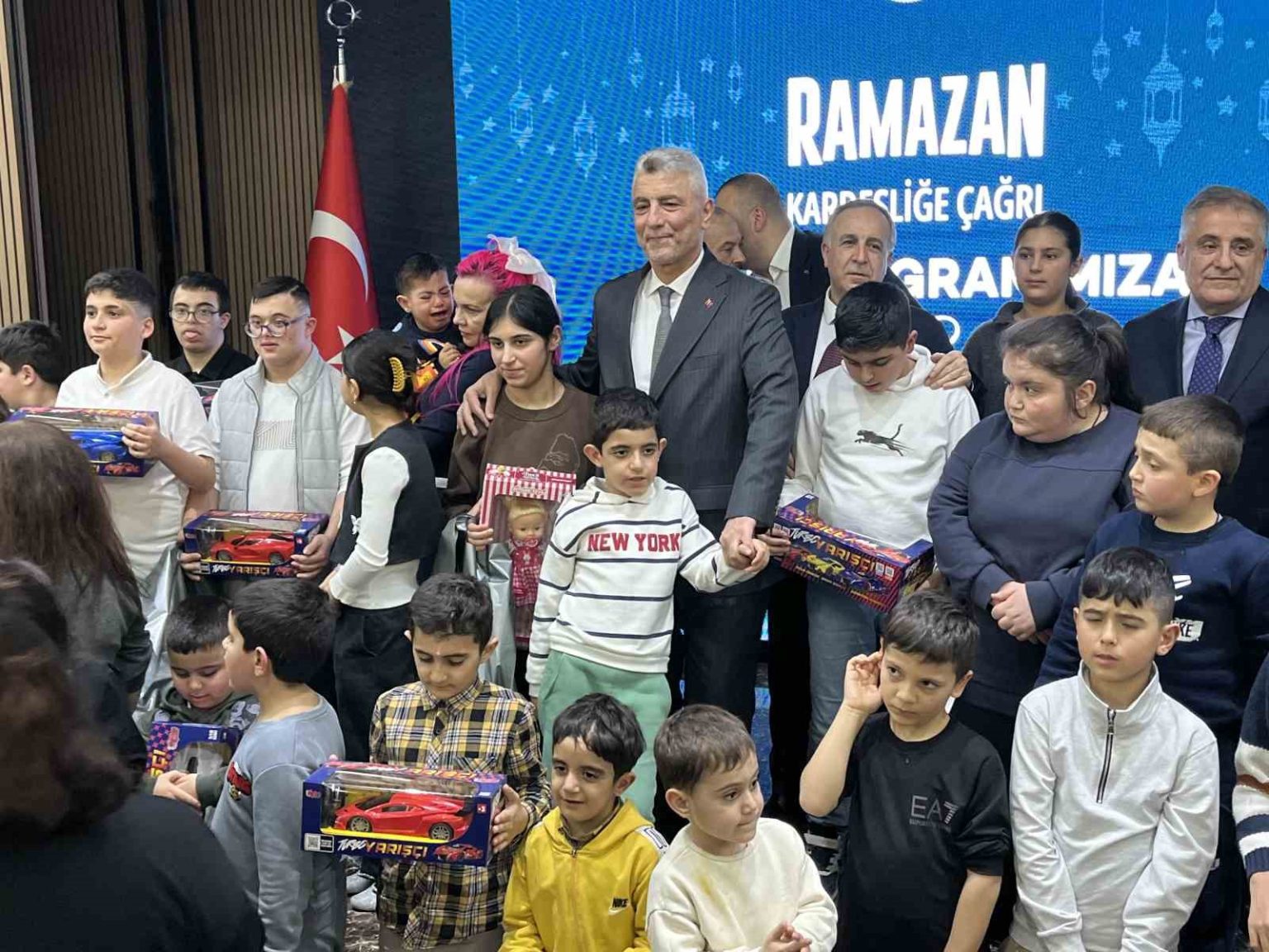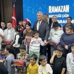 Program sonunda Bakan Bolat, çocuklarla bir araya gelerek onlara oyuncak hediye edildi.