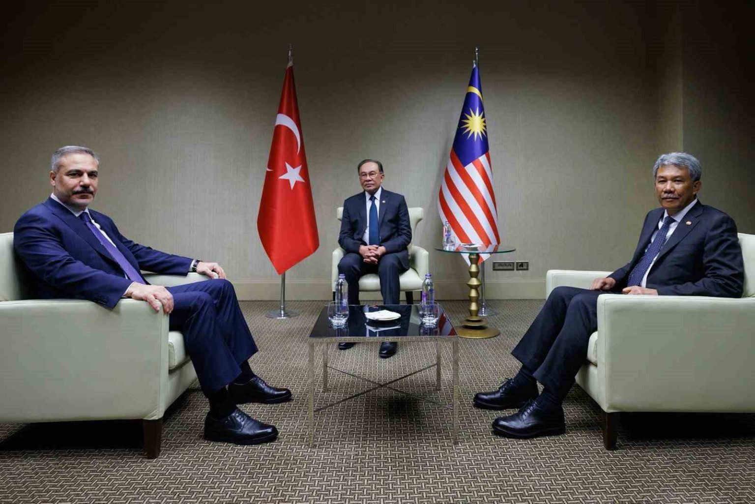 Dışişleri Bakanı Hakan Fidan, Malezya Başbakanı Enver İbrahim ve Malezya Dışişleri Bakanı Mohamed Hasan ile Ankara’da bir araya geldi.