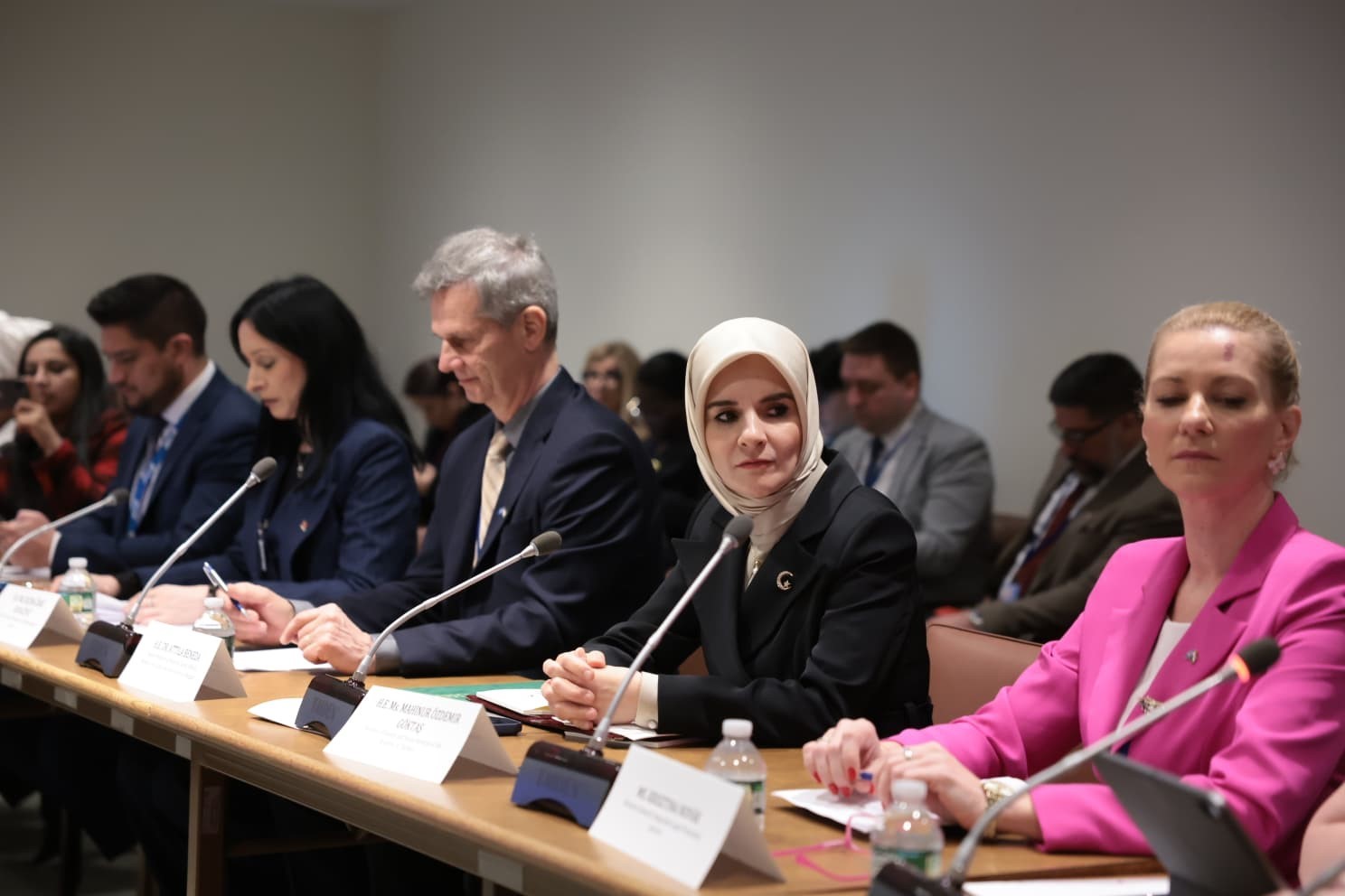 Başta Gazze olmak üzere çatışmaların sürdüğü bölgelerde kadınlar ve kız çocukları için adalete erişimin daha kırılgan hale geldiğini söyleyen Bakan Göktaş, “Yerlerinden edilen ailelerin, en temel koruma hizmetlerine ve hak arama yollarına ulaşırken çok yönlü güçlükler yaşadığına hep birlikte tanıklık ediyoruz. Oysaki aile, en ağır şartlarda dahi bireyi ayakta tutan, kadınlar ve çocuklar için güven ve korunma sağlayan en temel yapıdır. Bu nedenle, Türkiye olarak, aileyi koruyan, kadınlar ve kız çocukları için güvenliği ve adalete erişimi teminat altına alan yaklaşımları destekliyoruz” dedi.