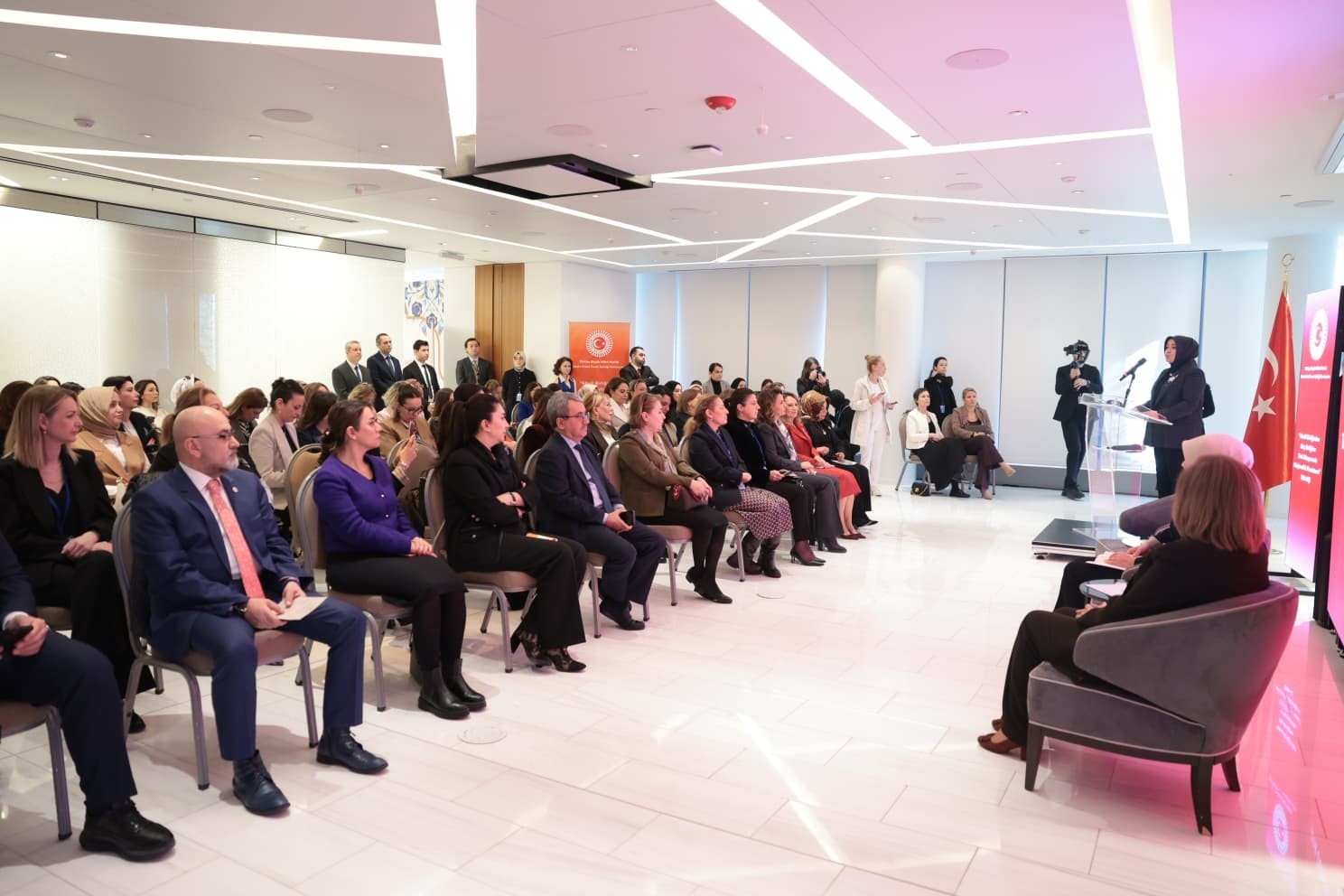 Programa Azerbaycan Cumhuriyeti Aile, Kadın ve Çocuk Problemleri üzere Devlet Komitesi Başkanı Bahar Muradova, Kadın-Erkek Fırsat Eşitliği Komisyonu Başkanı Çiğdem Erdoğan ve KAGİDER Başkanı Esra Bezircioğlu da katılarak birer konuşma yaptı.