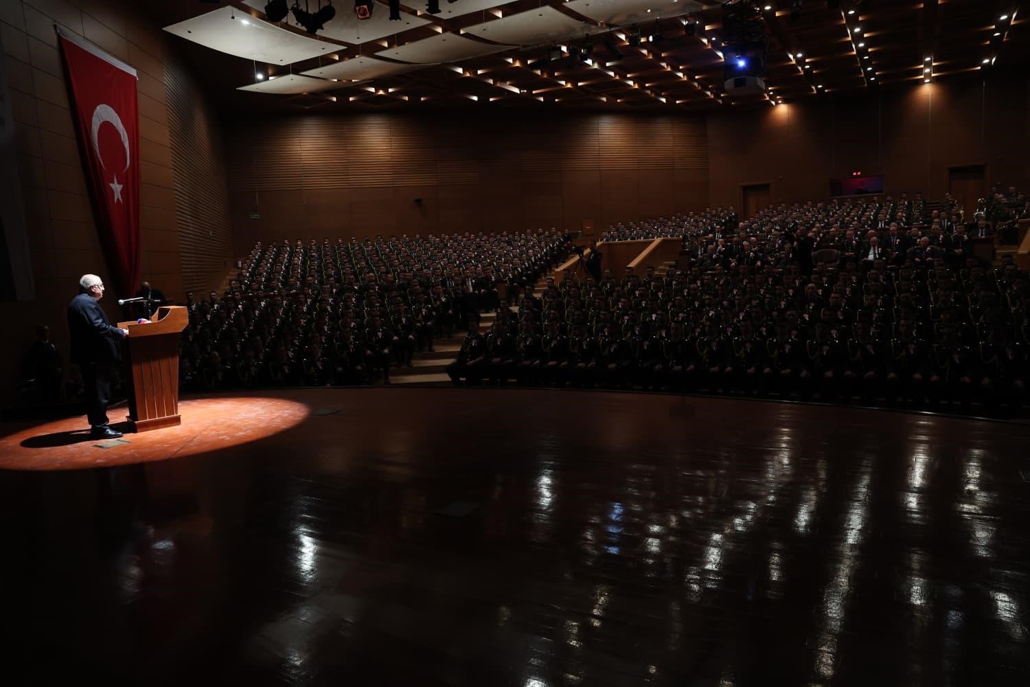 Kara Harp Okulu’nun komutanların, devlet adamlarının ve fikir insanlarının yetiştiği, Türkiye’nin köklü eğitim kurumlarından biri olduğunu aktaran Bakan Güler, “İşte Mustafa Kemal’in de bu şanlı yuvanın kapısından içeri girdiği gün sadece bir askeri öğrencinin eğitim hayatı başlamamış aynı zamanda bir milletin kaderine etki edecek büyük bir liderin yolculuğu da başlamıştır. Harbiye’de kazandığı disiplin düşünce derinliği ve sorumluluk bilinci; onu Milli Mücadele’yi zafere taşıyan ve Cumhuriyetimizi kuran bir önder haline getirmiştir. Bugün, aynı kutlu mirasın taşıyıcıları olan sizlerin de Harbiye’de kazandığınız bilgi ve birikim hem bir meslek yolculuğunun hem de asil milletimizin güvenliğini ve devletimizin istikbalini omuzlayacak bir komutanın yetişme sürecidir” ifadelerini kullandı.