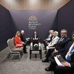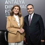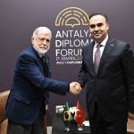 Bakan Kacır, Türkiye’nin Recep Tayyip Erdoğan liderliğinde ortaya koyduğu küresel vizyona dikkat çekerek, “Antalya Diplomasi Forumu marjında, Kosova Başbakan Yardımcısı Sayın Fikrim Damka, Sırbistan Dışişleri Bakanı Sayın Marko Uri, Suriye Sosyal İşler ve Çalışma Bakanı Sayın Hind Kabawat, Singapur Devlet Bakanı Sayın GanSiow Huang, Brezilya Devlet Başkanı Başdanışmanı, önceki dönem Dışişleri ve Savunma Bakanı Sayın Celso Luiz Nunes Amorim, Uluslararası Uzay Federasyonu İcra Direktörü Sayın Christian Feichtinger ile verimli görüşmeler yaptık. Türkiye’nin Cumhurbaşkanımız Recep Tayyip Erdoğan liderliğinde barış, istikrar ve refah adına ortaya koyduğu küresel vizyona, sanayi ve teknolojide güçlü iş birlikleriyle katkı sunmaya devam edeceğiz” ifadelerine yer verdi.