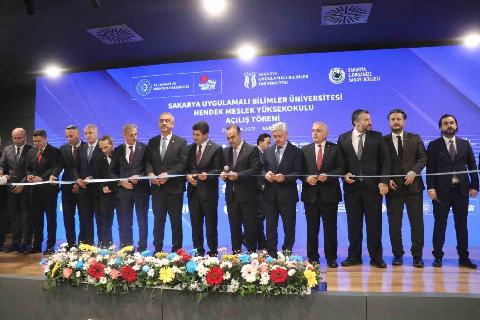 Sakarya Uygulamalı Bilimler Üniversitesi Hendek Meslek Yüksekokulu Açılış Töreni, Sanayi ve Teknoloji Bakanı Mehmet Fatih Kacır’ın katılımıyla gerçekleştirildi. Hendek ilçesi Organize Sanayi Bölgesinde inşa edilen yüksekokulun açılışında konuşan Bakan Kacır, “Sanayisiyle, ticaretiyle ülkemizin lokomotif şehirleri arasında yer alan Sakarya’mızın üretim gücüne güç katacak yeni eğitim yuvamızın şehrimize, ülkemize hayırlı, uğurlu olmasını temenni ediyorum. Geleceğimizi emanet edeceğimiz gençlerimize geçmişin fotoğrafını sunmak; bugünün Türkiye’sinin inşa sürecini doğru şekilde anlatmak, onları yarınlara daha güçlü hazırlayacaktır. 23 yıl önce üretimi montaj sanayinin ötesine geçemeyen, kabiliyetleri bastırılan, gençlerinin girişimlerini ve hayallerini askıda bırakan anlayışın hâkim olduğu bir Türkiye tablosu vardı. Vakti zamanında Vecihi Hürkuş, Nuri Demirağ, Şakir Zümre gibi nice öncü ismin girişimlerinin akamete uğratılması, ülkemizden çıkacak her kıvılcımın ateşini henüz yanmadan söndürdü. Türkiye’ye yıllar yılı hem vakit kaybettiren hem de milletimizin özgüvenini bastıran “biz yapamayız” anlayışı, 23 yıl öncesine kadar sürdürüldü. Ancak ayağımıza vurulan bu prangalardan 23 yıl önce Cumhurbaşkanımızın liderliğinde kurtulduk. Özgüvenini tekrar kazanan, küllerinden yeniden doğan bu milletin hayallerini birer birer gerçeğe dönüştürdük. Güçlü, rekabetçi ve sürdürülebilir sanayi altyapısıyla, Ar-Ge ve inovasyon yatırımlarıyla, nitelikli insan kaynağıyla ülkemizi bölgesinde ve dünyada söz sahibi konuma taşıdık. Üretimde ve teknoloji geliştirmede attığımız uzun vadeli adımların neticesinde imalat sanayi katma değerimizi 41 milyar dolardan 241 milyar dolara yükselttik. Askeri insansız hava aracı üretiminde dünya lideri olduk. Ticari araç, güneş paneli, beyaz eşya gibi pek çok üründe Avrupa’nın önde gelen üreticisi konumunda yer alan bir Türk sanayii inşa ettik. Yıllık ürün ihracatımız, imalat sanayimizin öncülüğünde 36 milyar dolardan 270 milyar dolara çıktı. Türkiye bugün, Çin’den sonra Orta Avrupa’ya kadar uzanan kuşakta ürettiği ürün ve ihracat yaptığı pazar çeşitliliği açısından en rekabetçi ülkedir” dedi.