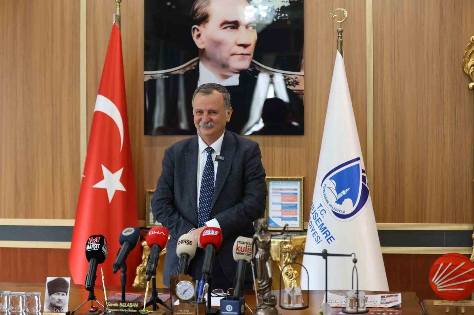 Yunusemre Belediye Başkanı Semih Balaban, aylık basın toplantısında görev süresi boyunca yapılan çalışmalar hakkında bilgi verdi. Başkanlık makamında gerçekleştirilen toplantıya başkan yardımcıları da katıldı. 3 Nisan Cuma günü saat 16.30’da CHP Genel Başkanı Özgür Özel’in katılımıyla çok sayıda yatırımın toplu açılışının yapılacağını belirten Başkan Balaban, tüm Manisalıları programa davet etti.