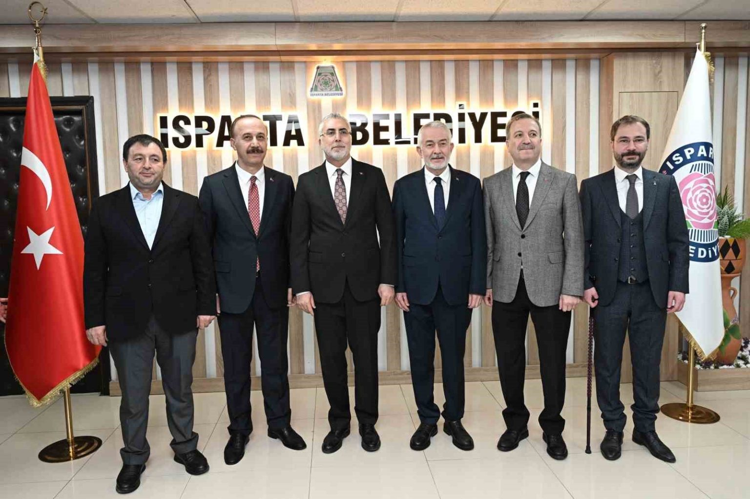 Çalışma ve Sosyal Güvenlik Bakanı Vedat Işıkhan, Isparta ’Belediye Başkanı Şükrü Başdeğirmen’i ziyaret etti. Başkan Başdeğirmen, İş Gücü Uyum Programı kapsamında ilk alımda 2 kat istihdam talep ederken, Bakan Işıkhan, “Başkanımızı kırmayalım talep ettiği istihdamın 2 katı hayırlı olsun diyelim” dedi.