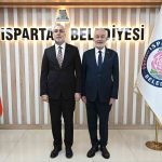 Bir dizi ziyaret ve Güçlü Kadınlar Güçlü Yarınlar İftara Programı’na katılmak üzere Isparta’ya gelen Çalışma ve Sosyal Güvenlik Bakanı Vedat Işıkhan, Belediye Başkanı Şükrü Başdeğirmen’i ziyaret etti. Ziyarette Belediye Başkanı Şükrü Başdeğirmen, Çalışma ve Sosyal Güvenlik Bakanı Vedat Işıkhan’a Isparta’ya kazandırdıkları projeler ve yeni yatırımlarla ilgili brifing verdi. Başkan Başdeğirmen, ziyarette duyduğu memnuniyetini ifade etti. Isparta’nın 271 bin kayıtlı nüfusu olduğunu dile getiren Başkan Başdeğirmen, öğrenci ve il dışından gelen misafirlerle bu rakamın 350 bine çıkabildiğini söyledi.