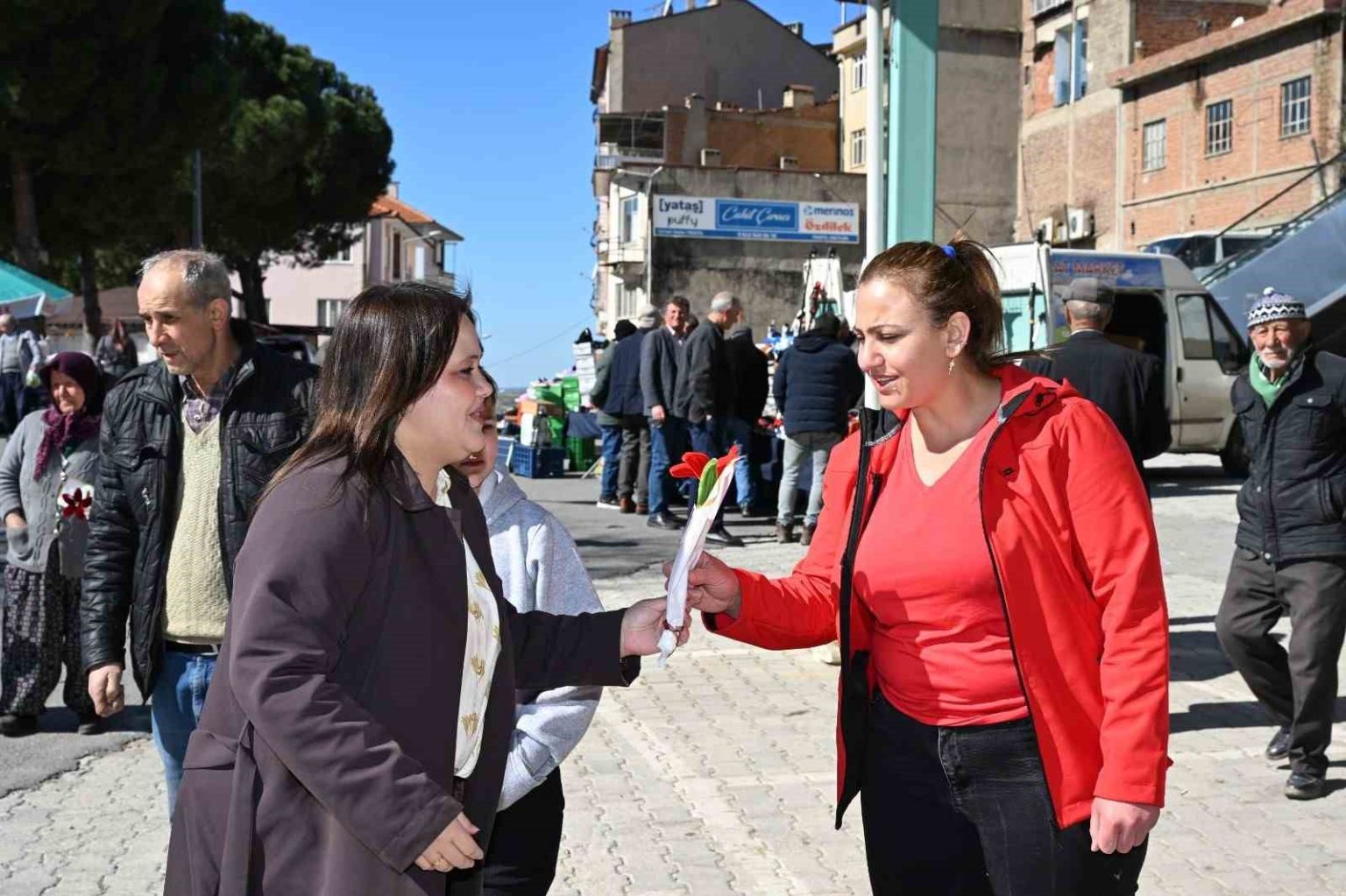 Programına ilçe pazaryerinden başlayan Başkan Kara, tezgah başında çalışan kadın esnaflar ve alışveriş yapan vatandaşlarla sohbet ederek günlerini kutladı. Pazaryerinde emek veren kadınlara tek tek çiçek veren Kara, kadınların toplumdaki emeği ve fedakarlığının önemine dikkat çekti. Pazar esnafı ise Başkan Kara’nın ziyaretinden duydukları memnuniyeti dile getirdi.