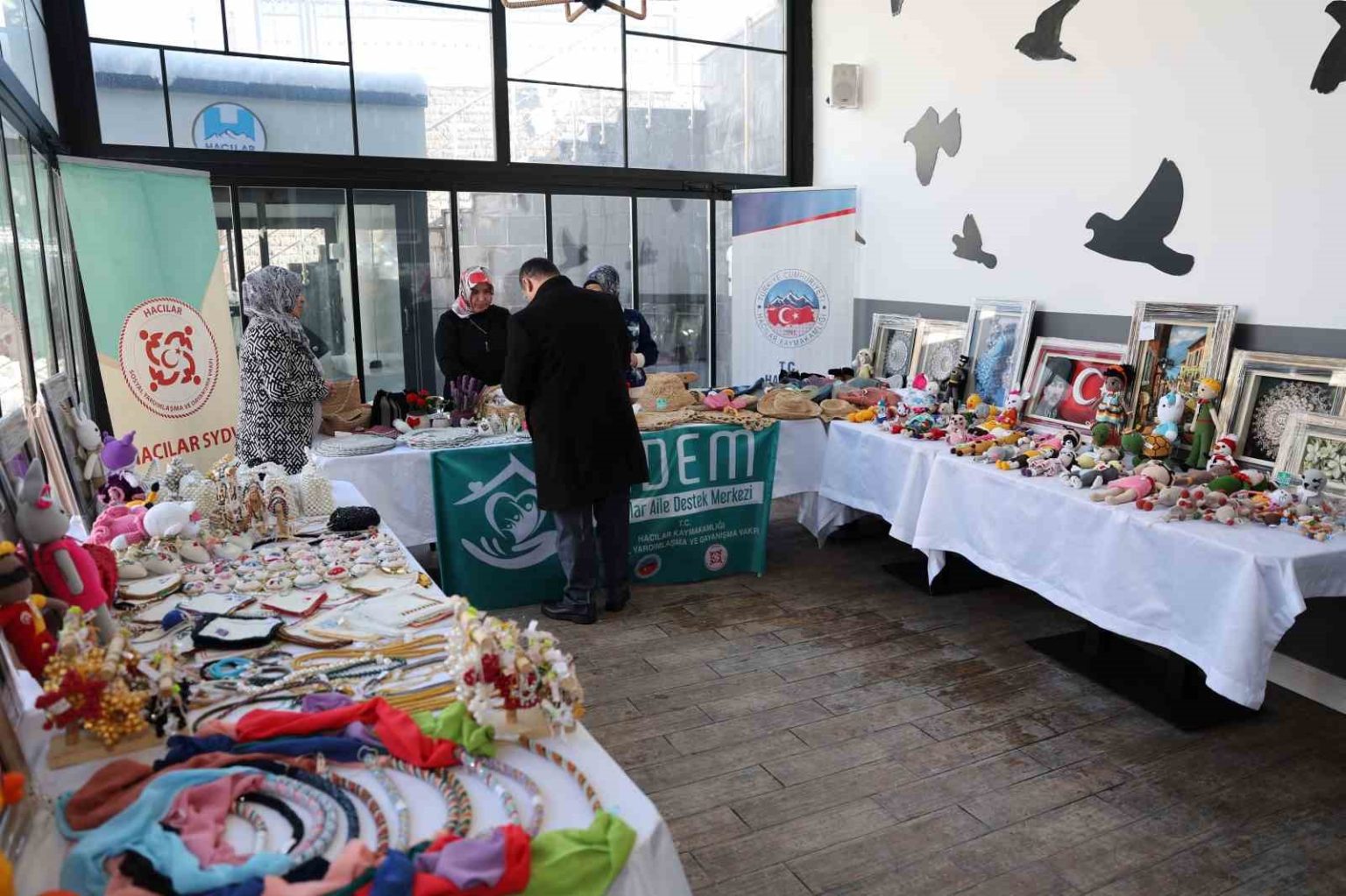 Programa; Hacılar Kaymakamı Cüneyt Caner, Hacılar Belediye Başkanı Bilal Özdoğan, ilçe protokolü, kursiyerler ve çok sayıda vatandaş katıldı. Hacılar Belediye Başkanı Bilal Özdoğan, Hacılar ADEM’in kadınların hem mesleki hem de sosyal gelişimine önemli katkılar sunduğunu vurgulayarak, kadın emeğini destekleyen her çalışmayı önemsediklerini ifade etti. Başkan Özdoğan, “Aile Destek Merkezimizde kadınlarımızın yıl boyunca büyük bir emekle ortaya koyduğu ürünleri görmek bizler için mutluluk verici. Bu çalışmalar, kadınlarımızın üretime katılımını artırırken aynı zamanda aile ve toplum yapısını da güçlendiriyor” dedi. Hayır panayırında, kadın kursiyerlerin el emeği göz nuru ürünleri stantlarda sergilendi. Ziyaretçilerden yoğun ilgi gören ürünler, kursiyerlerin edindikleri bilgi ve becerilerin somut bir yansıması olarak beğeni topladı.