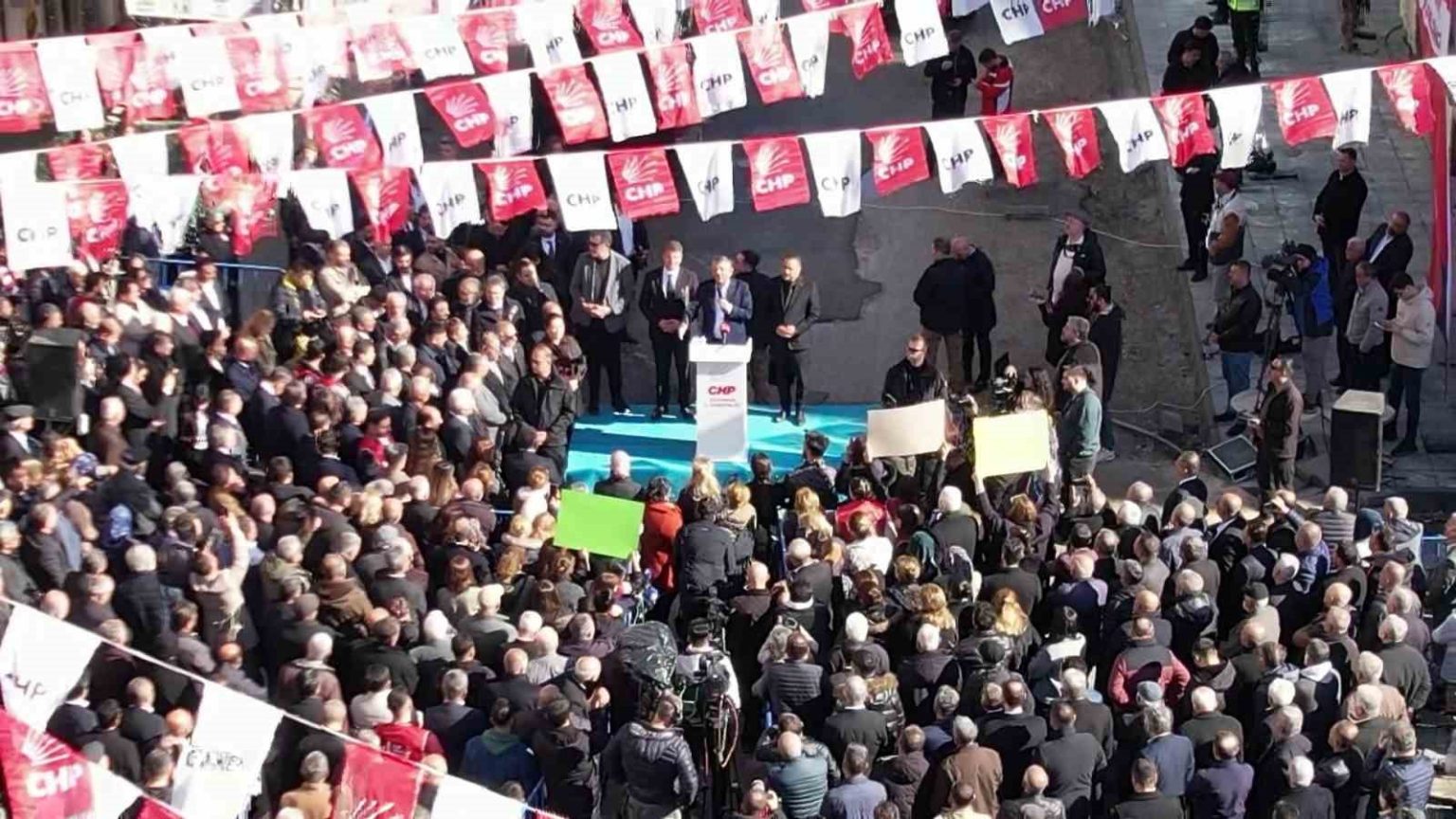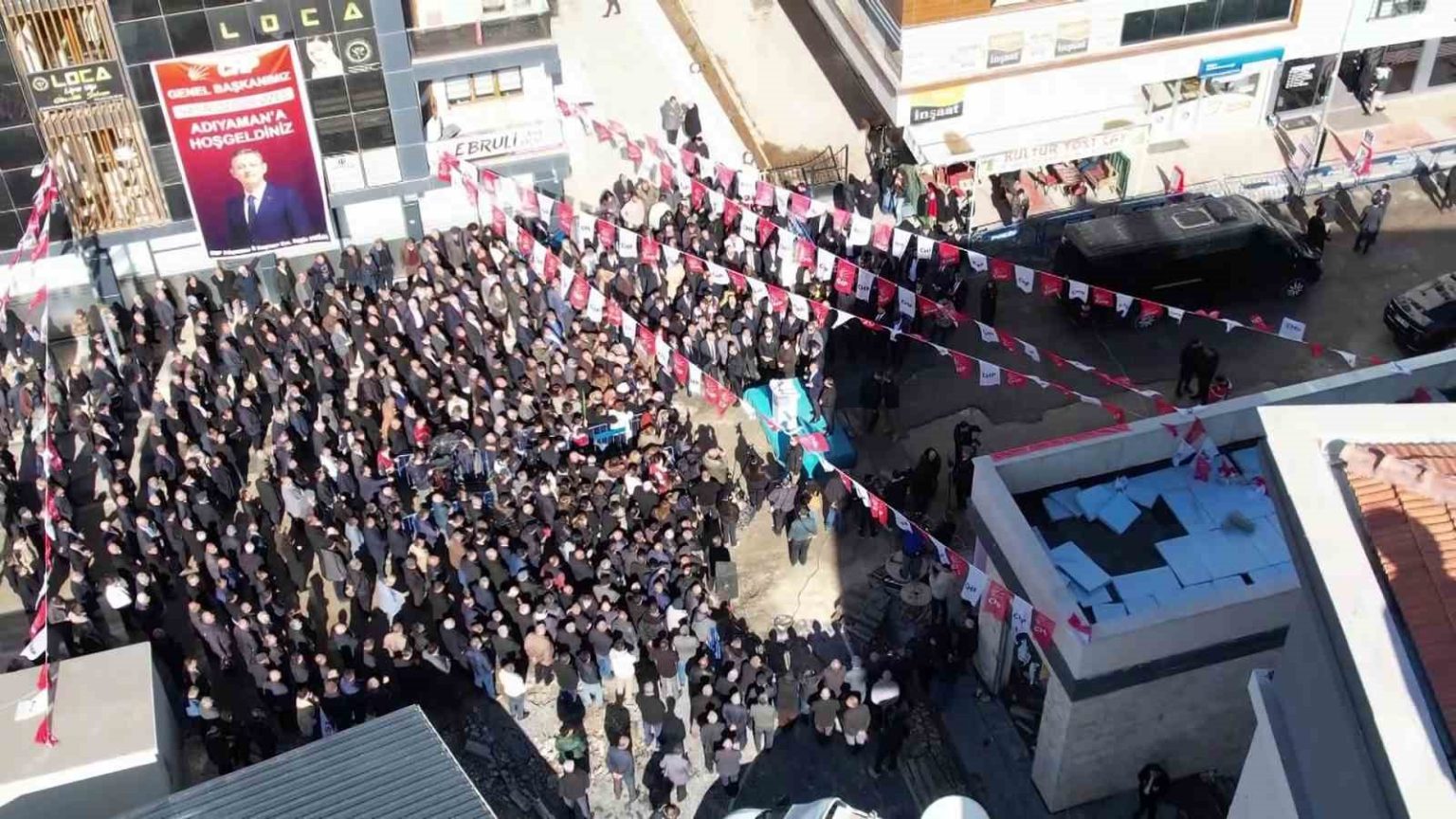 CHP Adıyaman İl Başkanlığı önünde halka hitap eden CHP Genel Başkanı Özgür Özel’in programına az sayıda kişi katılması dikkatlerden kaçmadı. Vatandaşların ilgi göstermediği program dron kamerasıyla görüntülendi.