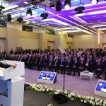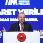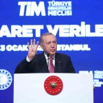 Cumhurbaşkanı Erdoğan, “Dış ticaret dahil ekonominin bütün alanlarında belirlediğimiz hedeflerin küresel gelişmelerden bağımsız ele alınması beklenemez. Globalleşmenin bu kadar yayıldığı, dünyanın devasa bir köye dönüştüğü, insanlığın kaderinin daha önce hiç olmadığı kadar kesiştiği bu dönemde ister menfi, ister müspet olsun her olay bizi de etkilemektedir. Küresel ekonomideki belirsizliklerin, tıkanıklıkların her ülke gibi Tükiye’de de yansımaları oluyor. Uluslararası sistem, özellikle BMGK yine kendisinden beklenenleri yerine getiremedi. Bunun da bedelini maalesef Gazze’li mazlumlar ödedi. Bizim de çabalarımıza sağlanan ateşkese rağmen İsrail hükümeti insani yardım girişlerini engellemeye, sivilleri katletmeye, Ortadoğu’dan Afrika’ya uzanan geniş bir alanda istikrarsızlık üretmeye devam ediyor” dedi.