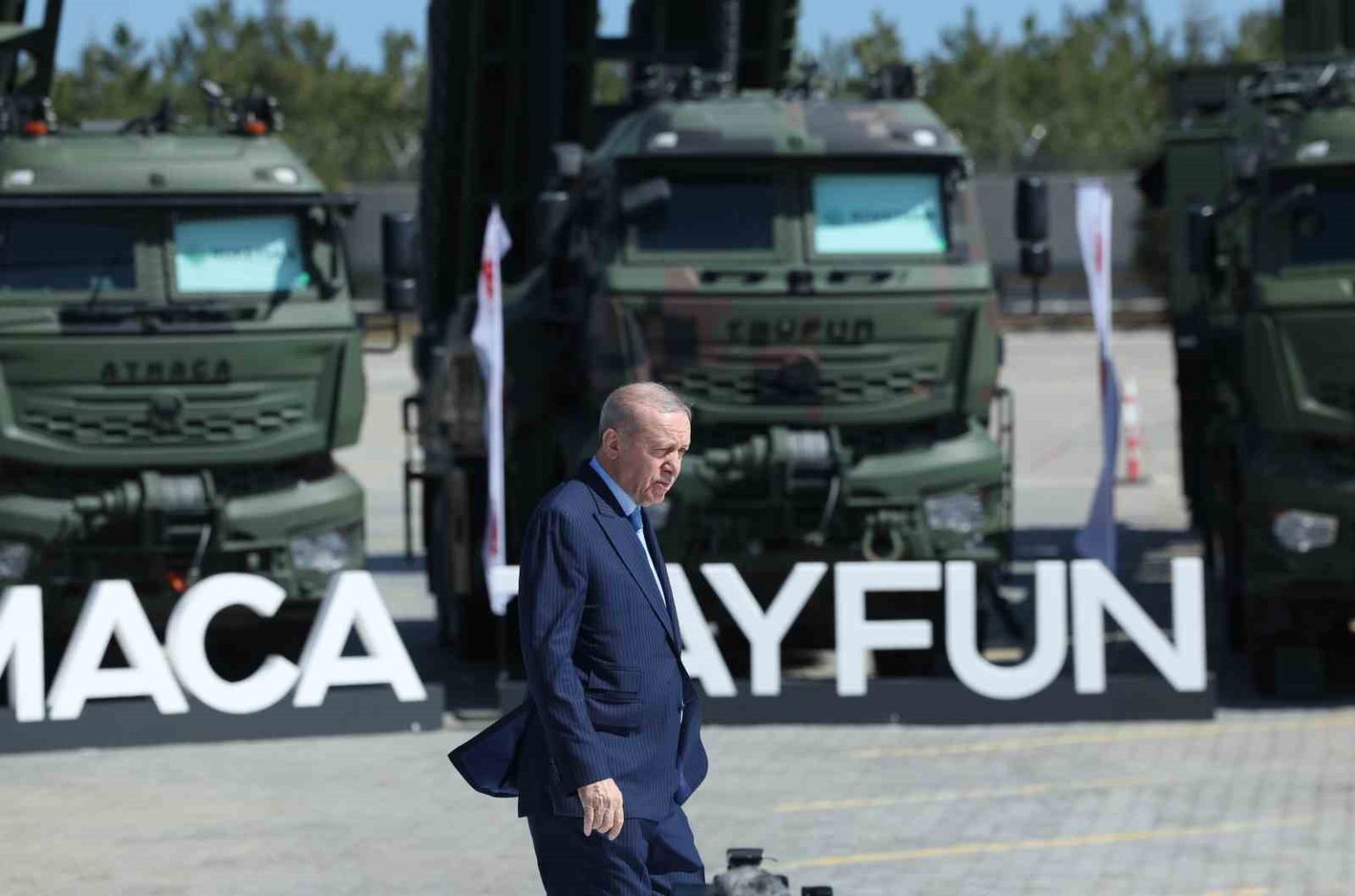Cumhurbaşkanı Erdoğan, Türkiye’nin savunma alanında tam bağımsız olabilmesi için çok önemli bir eşiğin daha geride bırakıldığına dikkat çekerek, “Kırıkkale yakıt üretim tesislerimizin, Lalahan harp başlığı tesisimizin, İleri Teknolojiler Ar-Ge ve Mühendislik Merkezimizin açılışını yapacağız. Ayrıca Tayfun, Siper, Atmaca, Hisar-A, Hisar-O ve Sungur sistemlerimiz ile Çakır, SOM, SİHA’larımızın keskin pençesi MAM-T ve MAM-L gibi birçok silah grubunu kahraman ordumuza teslim edeceğiz. Lalahan Füze Entegrasyon Tesislerimizin de temellerini atacağız. Savunma sanayimizi daha güçlü bir kalkınma ekseni haline getirecek ve nitelikli istihdam oranını yükseltecek bu yatırımlarla; katmanlı hava savunma sistemimizi güçlendirecek, stratejik gücümüzü artıracak seyir ve balistik füze kabiliyetlerimizi perçinleyecek akıllı mühimmat ailemize seri üretim hızımıza ve Ar-Ge kapasitemize çok önemli katkılar yapacağız. Çelik kubbenin vurucu gücünü oluşturan bu sistemlerin daha yüksek üretim temposuna ulaşmasıyla hava savunma mimarimizi daha da tahkim etmiş olacağız. Kritik hava savunma sistemlerimiz, stratejik füze projelerimiz ve akıllı mühimmat kabiliyetlerimiz için kurulan bu yeni altyapıyla kahraman ordumuzun caydırıcılığını çok daha üst seviyelere çıkaracağız” ifadelerine yer verdi.