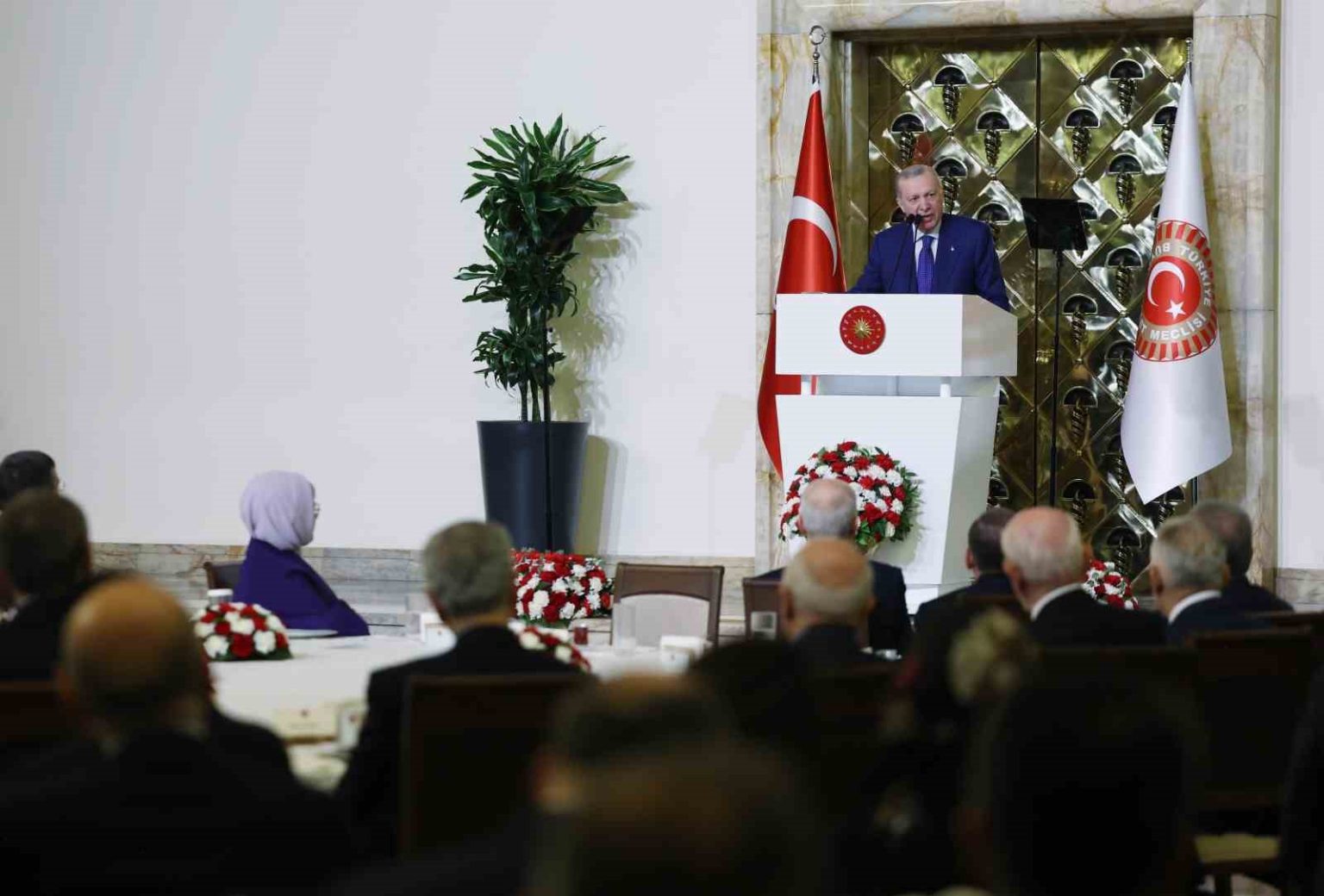 Cumhurbaşkanı Recep Tayyip Erdoğan, Türkiye Büyük Millet Meclisi’nde (TBMM) düzenlenen iftar programında milletvekilleriyle bir araya geldi. Ramazan ayını tebrik ederek konuşmasına başlayan Erdoğan, Meclis’in tarihi rolüne ve küresel gelişmelere ilişkin önemli mesajlar verdi. Konuşmasında TBMM’nin ikinci kez “gazi” unvanı aldığına vurgu yapan Erdoğan, 23 Nisan 1920’den bu yana millete hizmet eden tüm milletvekillerini şükranla andı. Milli Mücadele dönemine atıfta bulunan Erdoğan, İstiklal Harbi’nin Başkomutanı Mustafa Kemal Atatürk’ün “Ya istiklal ya ölüm” sözünü hatırlatarak, bağımsızlık ruhunun önemine dikkat çekti. “Bu vatan ölmez. Ölmesi farz-ı muhaldir” diyen Erdoğan, “Türkiye, Türkiye’den büyüktür” sözünün hamasi bir söylem değil, milletin inancının ve iradesinin tescili olduğunu söyledi.
