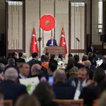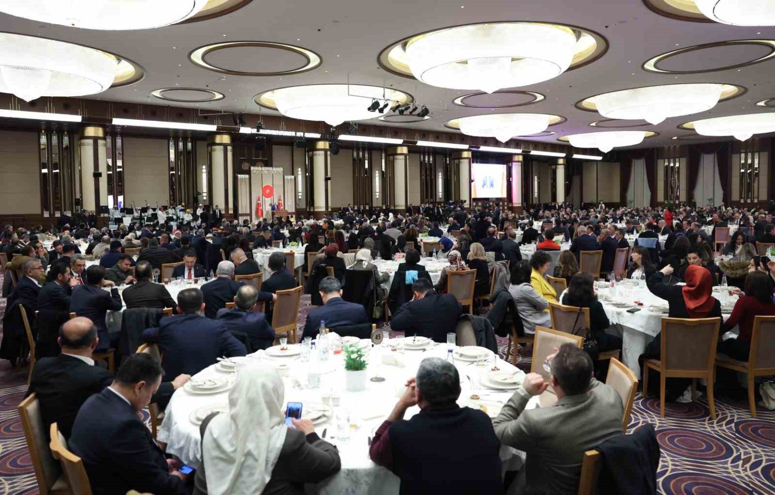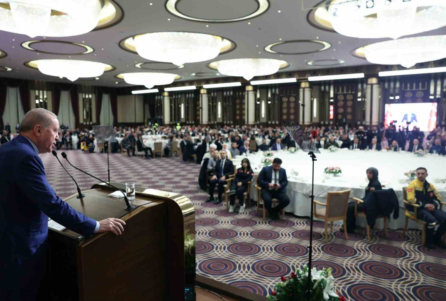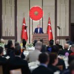 Konuşmasının başında Gazze ve Sudan’da Müslümanların zor şartlarda oruç tutup, iftar yaptığını hatırlatan Erdoğan, “Müslümanlar olarak bir taraftan 11 ayın sultanı Ramazan-ı Şerif’e erişmenin coşkusunu yaşıyor, diğer taraftan da Gazze’de Sudan’da ve daha birçok yerde sıkıntı çeken, eziyet gören bir kuru ekmek, bir tas çorba ile iftar yapmak zorunda kalan kardeşlerimizin sızısını yüreğimizde hissediyoruz. 10 Ekim’de bizim de çabalarımızla sağlanan ateşkese rağmen hukuk tanımaz İsrail hükümeti Gazze ve Batı Şeria’ya yönelik saldırılarını artırarak sürdürüyor. İsrail’in saldırıları sonucu 11 Ekim’den bu yana 615 Filistinli şehit oldu. 2 bine yakın Filistinli kardeşimiz yaralandı. İnsani yardım malzemelerinin girişinde halen ciddi güçlükler çekiliyor. Gazze’nin nefes borusu olan refah sınır kapısında kısıtlamalar, zulümler, İsrail’in keyfi davranışları maalesef devam ediyor. Yıkıntılar arasında kurşun ve şarapnel izleriyle dolu derme çatma binalarda iftar yapan, son derece çetin şartlar altında oruç tutan ama bunlara rağmen zalime boyun eğmeyen Gazze’li kardeşlerimiz bir kez daha imanlarıyla tüm Müslümanlara örnek oluyor” diye konuştu.