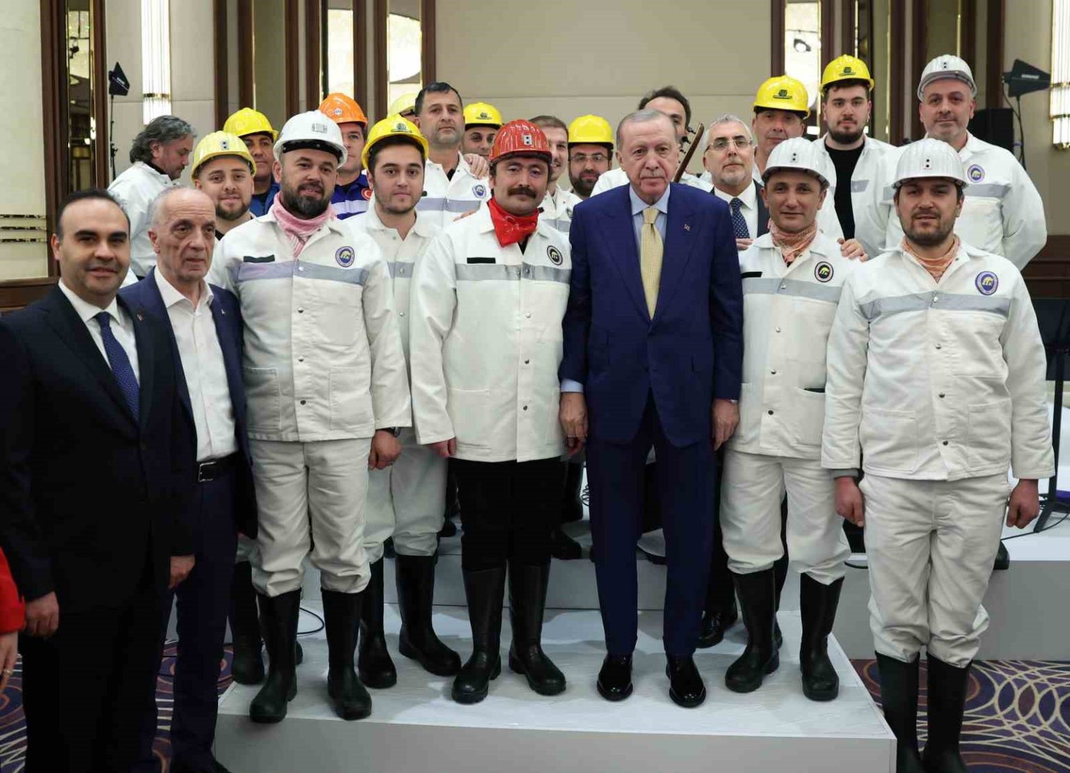 Kendi iktidarlarında, emekçilere daha önce verilip tutulamayan sözleri yerine getirdiklerini ve bunun yanında birçok hakkı emekçilere kazandırdıklarını belirten Erdoğan, “Yıllardır bizden önceki siyasilerin vaatlerinden öteye gitmeyen alanlarda, devrim niteliğinde adımları attık. Değerli kardeşlerim, bakın burada öne çıkan reformlarımızı sizlerle kısaca paylaşmak isterim. 1 Mayıs biliyorsunuz bu ülkede yıllarca en fazla tartışma konusu olan hususlardan biridir. 1 Mayıs’ı Emek ve Dayanışma Günü olarak resmi tatil ilan ederek bütün bu gereksiz tartışmalara biz son verdik. İşçi kardeşlerimizin daha emniyetli koşullarda çalışmalarını temin etmek için iş sağlığı ve güvenliği kanununu çıkardık. Sendikaların kuruluş şartlarını biz kolaylaştırdık. Sendikalar ve toplu iş sözleşmesi kanununu revize ederek iyileştirdik. Sendikal güvenceleri ve grev hakkını biz güçlendirdik. Kamu görevlilerimize toplu sözleşme hakkı tanıdık. Ana Muhalefet Partisi’nin Anayasa Mahkemesine taşıyıp iptal ettirdiği toplu sözleşme ikramiyesini yeniden biz yürürlüğe koyduk. Kamuda başörtüsü yasağını kaldırarak kadınların çalışma hayatındaki hak ve özgürlüklerini garanti altına aldık. Kamu çalışanlarımız artık Cuma izni, hac izni gibi haklardan tam ve etkin şekilde yararlanabiliyor” açıklamasında bulundu.