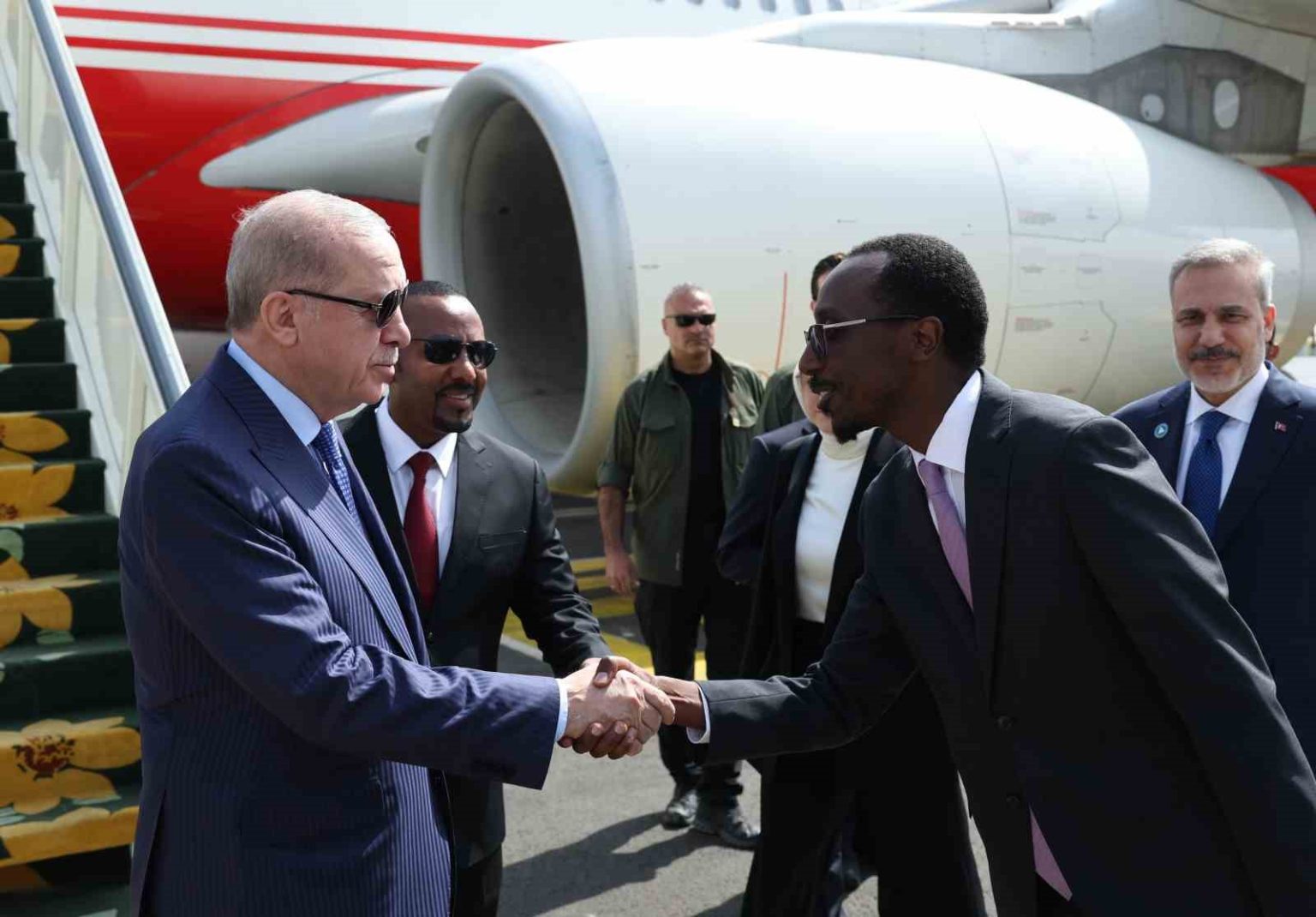 Cumhurbaşkanı Recep Tayyip Erdoğan, Etiyopya’ya geldi. Başkent Addis Ababa Bole Uluslararası Havalimanı’na inen Cumhurbaşkanı Erdoğan’ı Etiyopya Başbakanı Abiy Ahmed, Etiyopya Dışişleri Bakanı Gedion Timothewos ve Türkiye’nin Addis Ababa Büyükelçisi Berk Baran karşıladı.