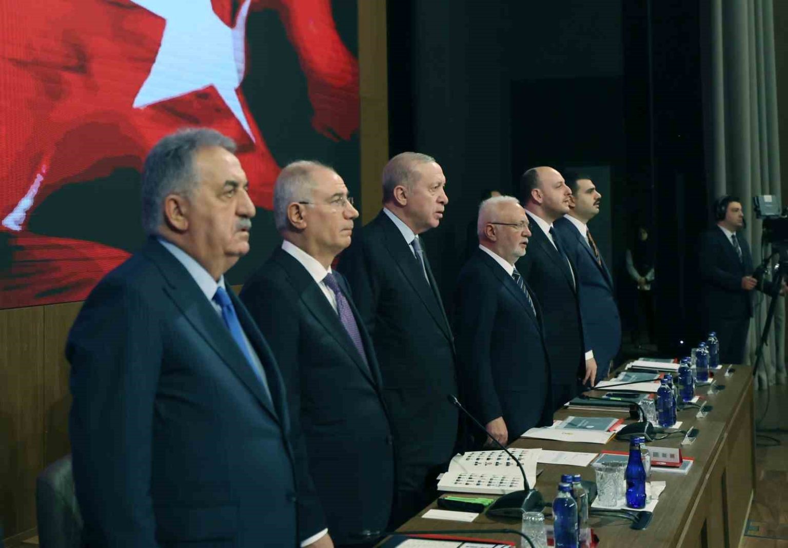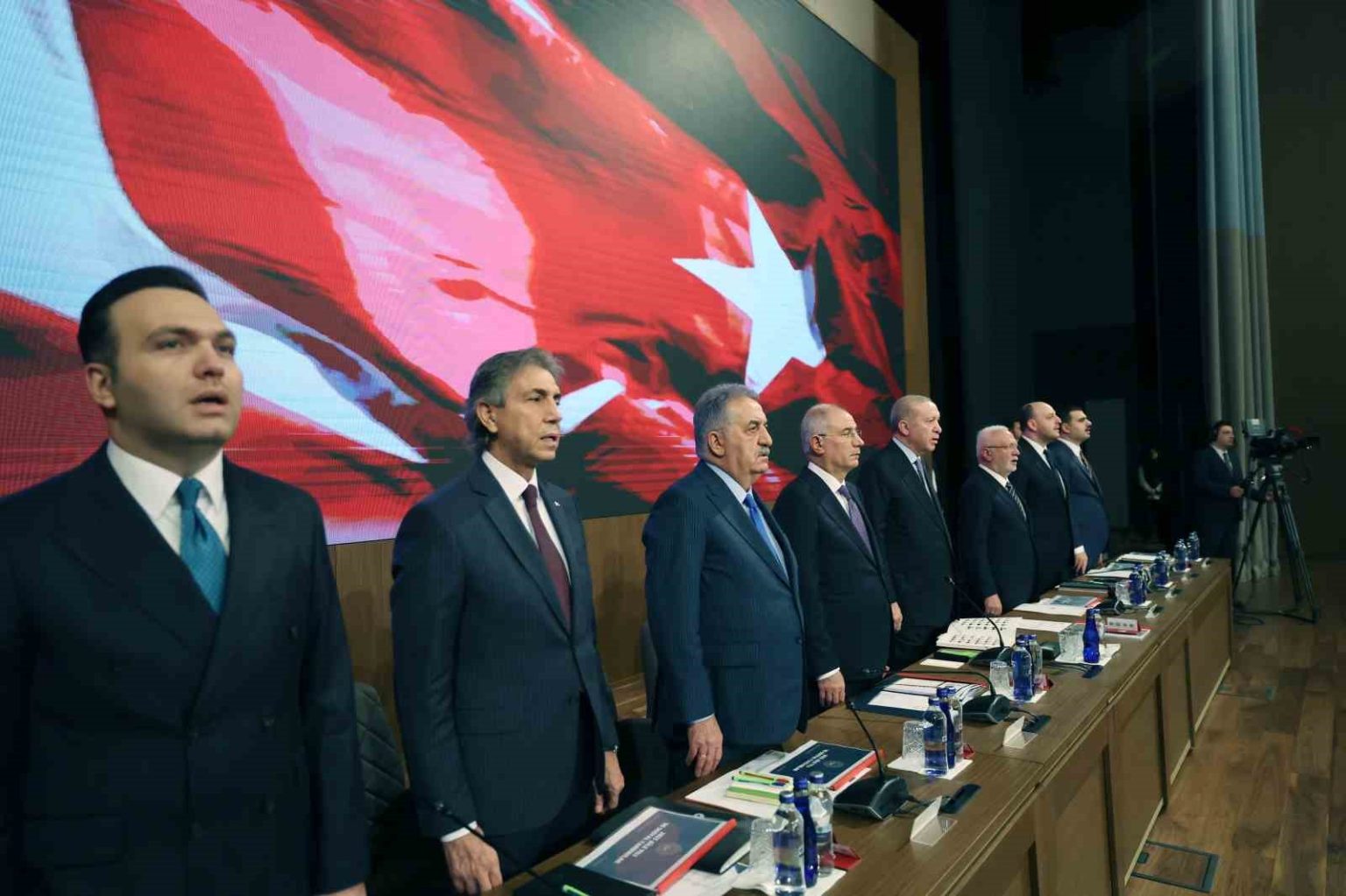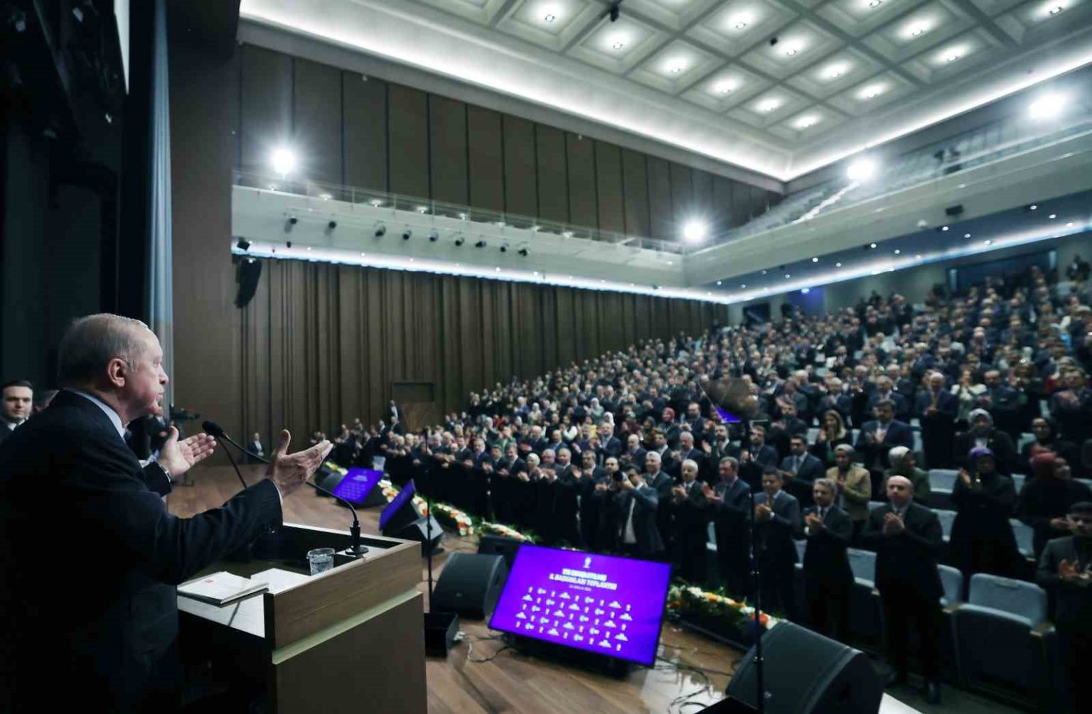 Cumhurbaşkanı Erdoğan, Türkiye’nin güçlü bir AK Parti’ye ve Cumhur İttifakı’na ihtiyaç duyduğunu vurgulayarak, safların genişletilmesi, muhabbetin güçlendirilmesi ve birlik ile beraberliğin daha da kuvvetlendirilmesi gerektiğini söyledi. Erdoğan, siyaseti hizmet aracı değil rant vasıtası olarak gören anlayışın belediyeleri hangi noktaya sürüklediğinin açıkça görüldüğünü belirterek,”86 milyonun geleceğini, gözlerini rant hırsı bürümüş kifayetsizlerin insafına terk etmeyeceğiz. Sizlerden omuzlarınızdaki yükün bilinciyle daha fazla çalışmanızı, daha fazla eser ve hizmet üretmenizi bekliyorum. Milletin bir kör kuruşunu dahi boşa harcamadan, tek bir lirasına dahi kirli ellerin uzanmasına müsaade etmeden çalışacağız, koşturacağız. Sözlerimi bitirmeden önce, 2026 yılı için 28 bin 75 lira olarak açıklanan yeni asgari ücretin, işçi ve işverenlerimize hayırlı olmasını diliyorum .Böylece, net asgari ücreti, geçtiğimiz yıla göre yüzde 27 oranında artırmış oluyoruz. Ayrıca, geçtiğimiz yıl Bin lira olarak uyguladığımız asgari ücret desteğini önümüzdeki yıl Bin 270 lira olarak uygulamayı sürdüreceğiz. Bundan sonra da emekçimizin, çalışanımızın, işverenimizin, velhasıl 86 milyonun her bir ferdinin yanında olacağız” açıklamasını yaptı.
