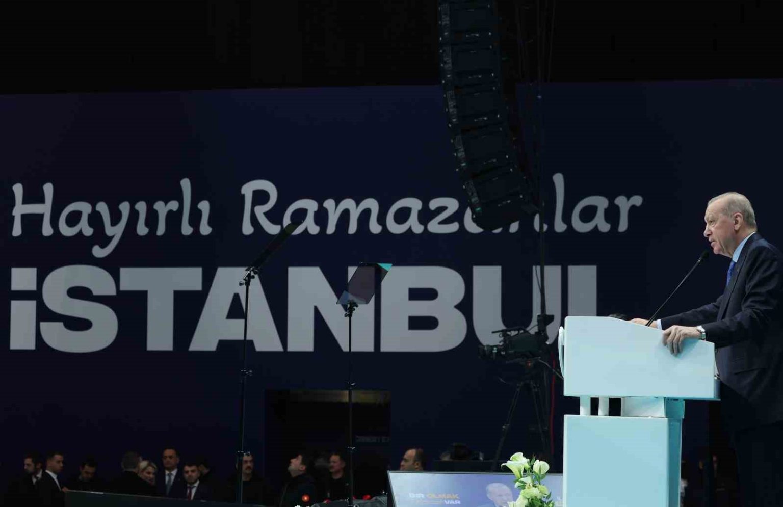 Cumhurbaşkanı Recep Tayyip Erdoğan, Atatürk Havalimanı Millet Bahçesi’nde AK Parti İl Teşkilatı İftar Programı’na katıldı. Cumhurbaşkanı Erdoğan programda yaptığı konuşmada, “Ramazan, hepinizin çok iyi bildiği gibi yardımlaşmanın, dayanışmanın ve hoşgörünün zirveye ulaştığı bir aydır. Belediyelerimiz, hayırseverlerimiz, sivil toplum örgütlerimiz bilhassa bu mübarek günlerde her zamankinden daha yoğun olarak yardımlaşma ve dayanışma faaliyetlerine ağırlık veriyor. AK Parti olarak biz de en tepeden mahalle temsilcimize kadar sahur ve iftar programlarında milletimizle beraber oluyoruz. Kimseyi ayırmadan, genç yaşlı demeden insanımızın derdiyle dertleniyor, muhabbetimizi güçlendiriyor, birlik ve beraberliğimizi perçinliyoruz. İstanbul teşkilatımızın da tam kadro sahada olduğunu, Ramazan-ı Şerif’i hakkını vererek idrak etme çabasında olduğunu memnuniyetle müşahede ediyorum. Teşkilatımızı yaptıkları güzel çalışmalardan, örnek faaliyetlerinden ötürü burada tebrik ediyor, her bir kardeşime teşekkür ediyorum” dedi.
