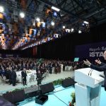 “28 Şubat döneminde işinden atılan veya istifaya zorlanan kardeşlerimizin haklarını kendilerine iade ettik” ifadelerini kullanan Cumhurbaşkanı Erdoğan, “Başörtüsüne yönelik keyfi uygulamalara ve anlamsız yasaklara son verdik. 15 Temmuz sonrasında, 28 Şubat’a en büyük desteği veren FETÖ’yü de tasfiye ederek 28 Şubatçıların önünü açtığı, palazlandırdığı, daha sonra milletin başına musallat ettiği bir beladan milletimizi kurtardık. 29 sene önce ikna odalarına alınan başörtülü kızlarımız bugün mülkiyede, adliyede, askeriyede, iç ve dış siyasette, dünyada, kabinede yani devletin tüm kademelerinde hiçbir kısıtlama olmadan özgürce görev yapıyor. Evlatlarımız inançlarıyla, kariyerleriyle, dini hassasiyetleriyle okulları arasında bir tercihte bulunmak zorunda kalmıyor. Güvenlik kuvvetlerimiz, üniversitelerimiz, yargımız, iş dünyamız, sendikalarımız artık vakitlerini siyasete balans ayarı yapmak için değil, asli vazifelerini en güzel şekilde yerine getirmek için harcıyor. Allah’a hamdolsun, AK Parti ve Cumhur İttifakı’nın kararlı, cesur, bir o kadar da akıllı ve sabırlı mücadelesi sayesinde işte bu noktalara geldik. Rabbim, bugünkü kazanımlarımızda, bugüne kadar elde ettiğimiz hak ve özgürlüklerde emeği, alın teri ve katkısı olan herkesten razı olsun diyorum” şeklinde konuştu.